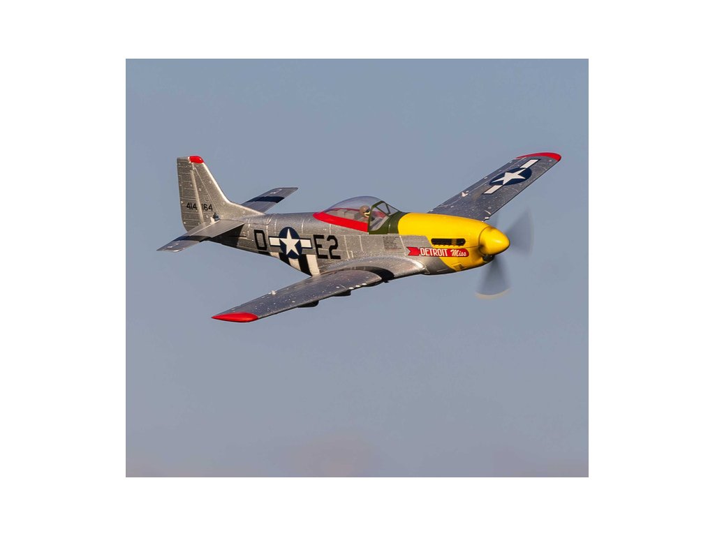 7. října 1944 se americký pilot Urban L. Drew – také známý jako „Ben“ Drew – stal jedním z pouhých tří pilotů USAAF, kteří se během bojové mise nad německým územím setkali s tehdy novou proudovou stíhačkou Messerschmitt Me-262. Byl jediným spojeneckým pilotem, který sestřelil dva proudové letouny se svým Mustangem P-51D s názvem „Detroit Miss“. E-flite® UMX™ P-51D Mustang je replikou tohoto historického letounu, doplněná řadou maketových detailů, skvělými letovými vlastnostmi, a vynikajícími výkony.