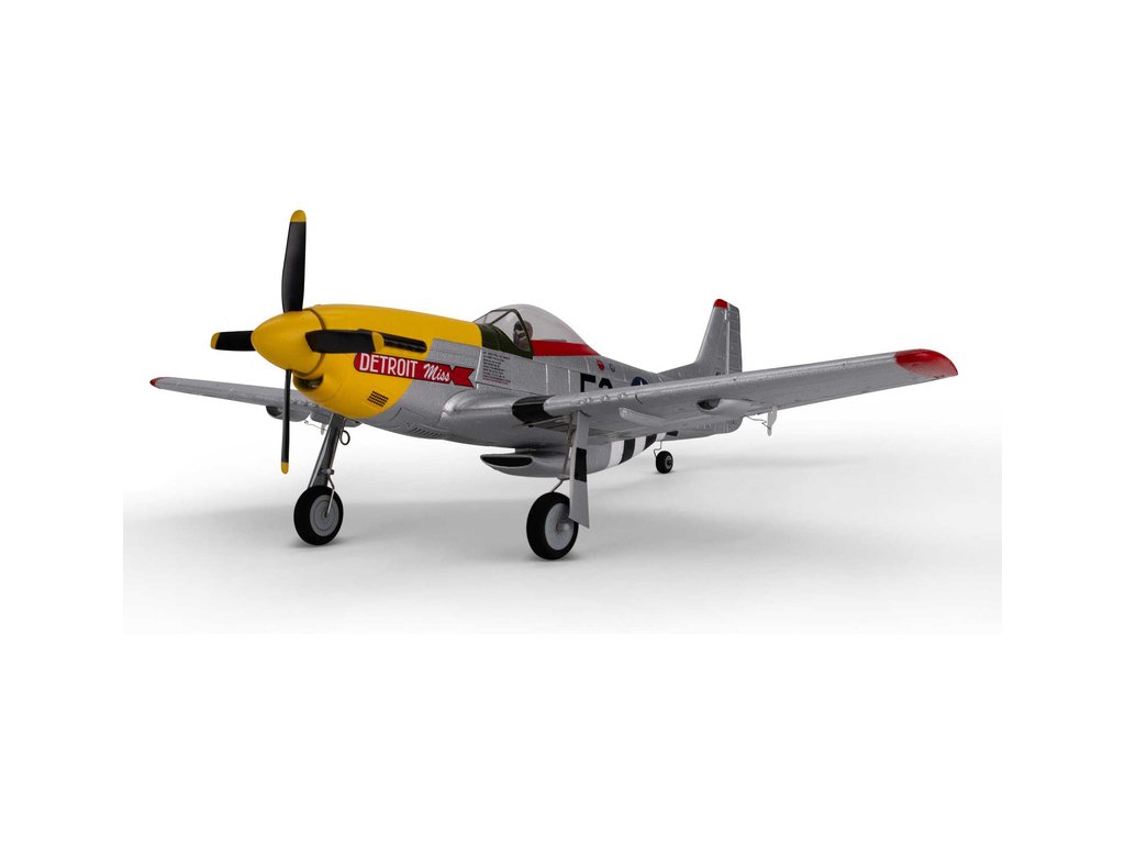 RC model mikro letadla na dálkové ovládání, známý P-51D Mustang v markingu “Detroit Miss” o rozpětí 493mm. Verze BNF s elektronikou AS3X a Safe Select. Střídavý motor na 2S - 3S Lipol baterii. Hotový smontovaný a nabarvený model je připraven ke spárování s vaším vysílačem Spektrum. Výkonný střídavý motor a nízká hmotnost je zárukou mimořádných letových schopností.