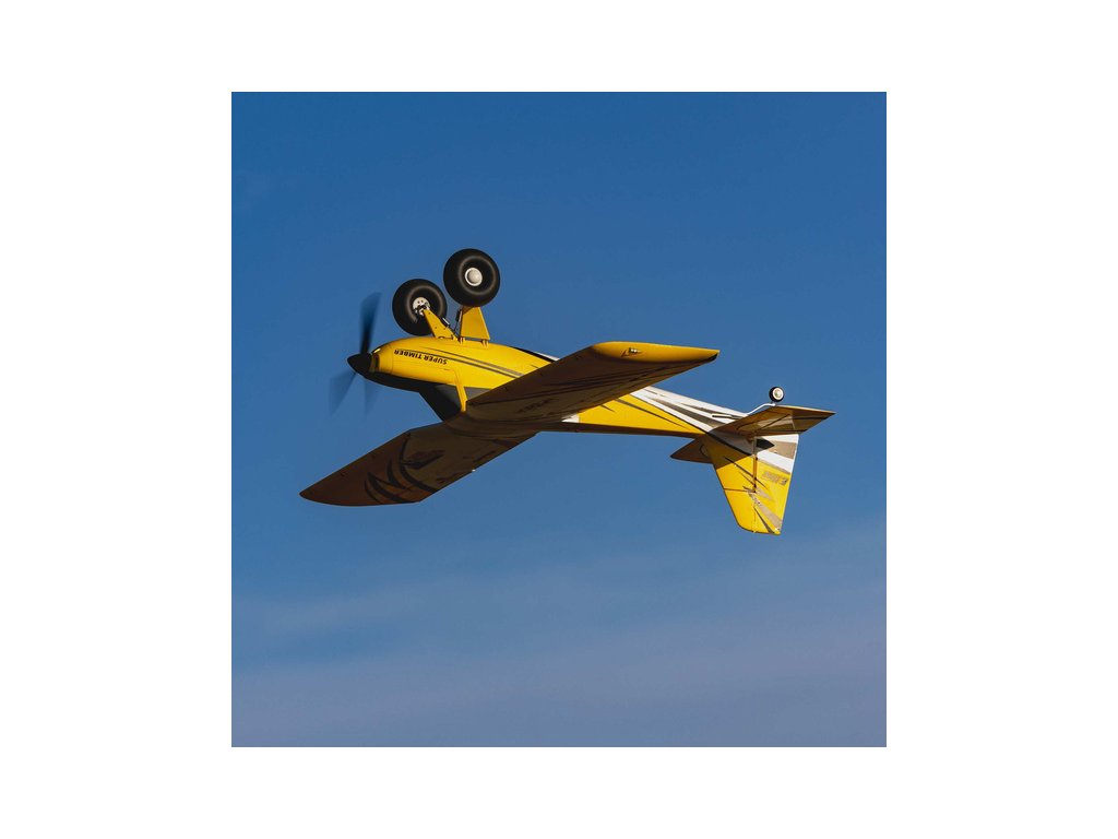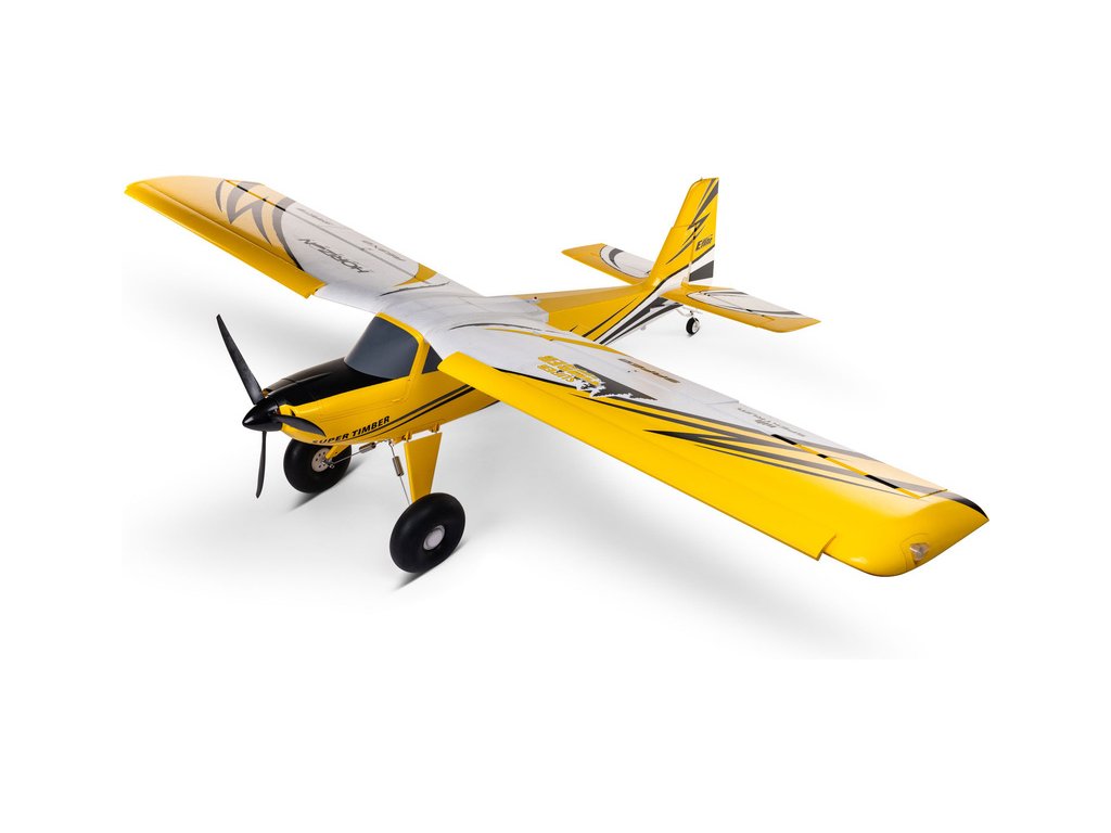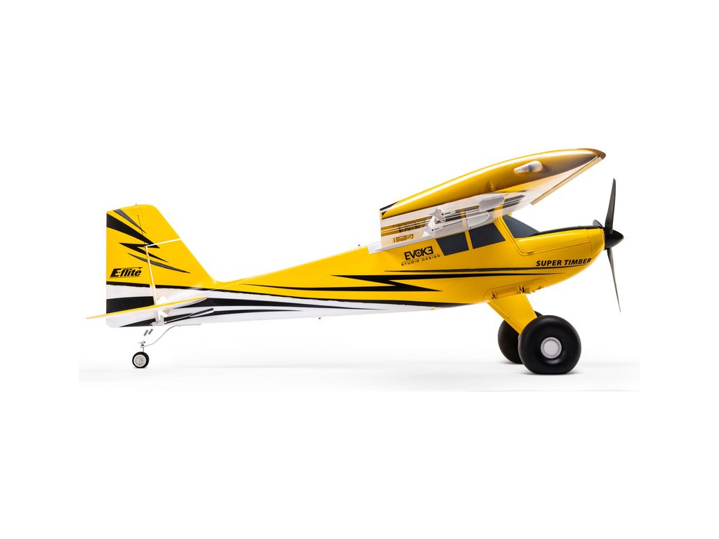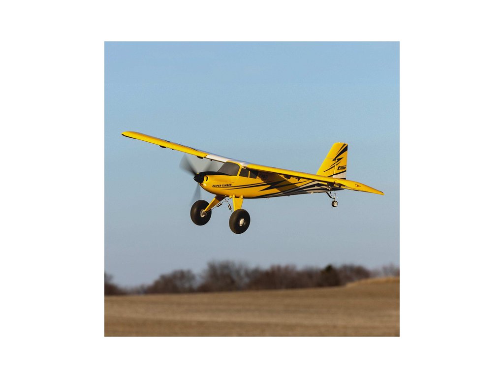 RC model letadla E-flite Super Timber o rozpětí křídla 1.7m, ve verzi BNF Basic.. Je vybaven LED osvětlením a výkonným střídavým pohonem pro 4S-6S LiPol baterie, elektronikou s telemetrií a funkcí AS3X a volitelnou funkcí ochrany letové obálky SAFE pro snadné létaní. Odolný podvozek s nafukovacími pneumatikami a odpružený podvozek pro létání na různých površích a klapky a sloty pro vlastnosti STOL. Montáž je snadná, bez použití nářadí a šroubů s Hands-free připojením. I když je model kompletně vybaven pro provoz, budete potřebovat 7+ kanálový vysílač Spektrum DSMX®/DSM2®, LiPol baterii 4S 14.8V - 6S 22.2V 3200–5000mAh s konektorem IC5 nebo EC5 a kompatibilní nabíječ.