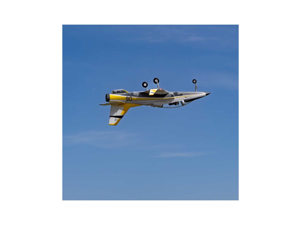 11-lopatkový rotor 64mm dmychadla v kombinaci s vysokootáčkovým střídavým motorem, regulátorem 70A a volitelnou LiPol baterií 4S 2200mAh 50+C až 3200mAh 30+C zajistí vysokou dynamiku pohonu, proto má model neuvěřitelný rozsah rychlostí s prakticky okamžitou odezvu na plynovou páku. Ale to co každého okamžitě zaujme, je úžasný zvuk vydávaný dmychadlem - téměř jako skutečná turbína.