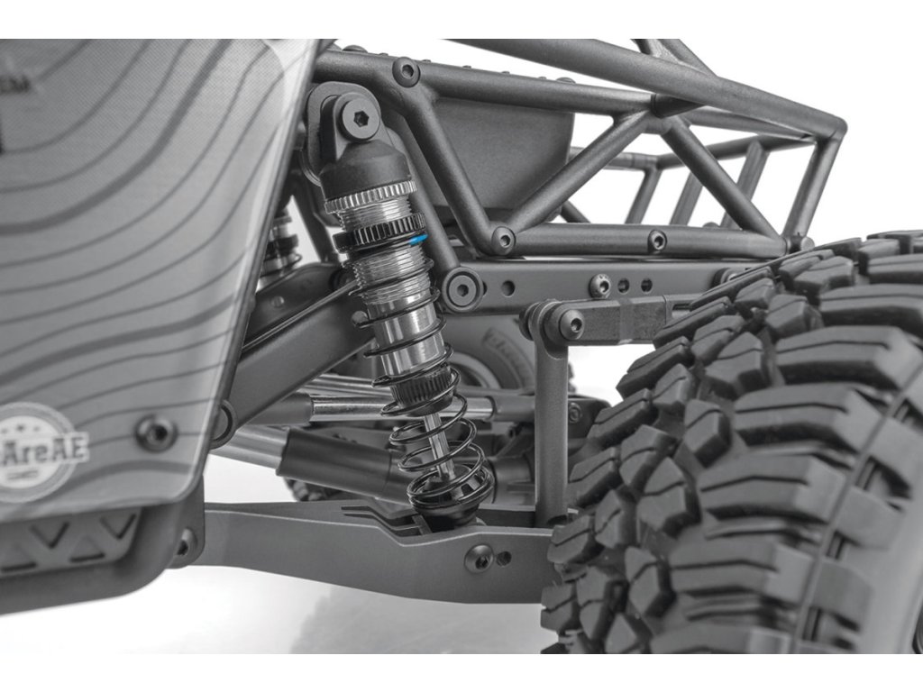 Čím je Enduro Ecto Trail Truck výjimečný? Balíček odpružení Gatekeeper (GKSTM)! Balíček GKSTM se skládá ze zadních vlečných ramen, která posouvají tlumiče dopředu, což umožňuje větší okno pro ladění tlumičů a zajišťuje lepší rozložení hmotnosti. Vlečná ramena jsou spojena se zadní protiprokluzovou tyčí pro stabilnější a konzistentnější odpružení při plazení po skalách. Nastavitelný hliníkový držák pásové tyče pevně přišroubovaný k liště podvozku poskytuje modelu Enduro Ecto spolehlivější a citlivější řízení bez prohýbání. Naše vložky pro uchycení tlumičů s několika montážními pozicemi umožňují přesné vyladění odpružení, ať už se jedná o posunutí tlumičů nahoru, dolů, dopředu nebo dozadu.