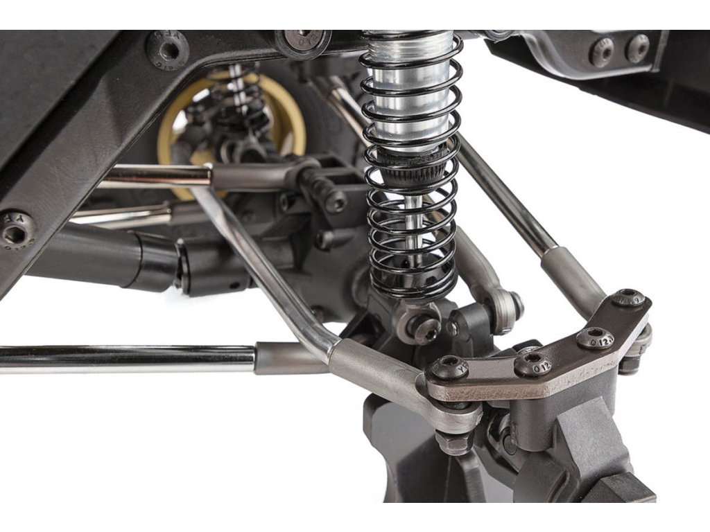 - Hliníkové závitové tlumiče: Hliníkové závitové tlumiče plněné kapalinou udržují vozidlo bezpečně na trati a olej uvnitř i v tom nejnáročnějším terénu.