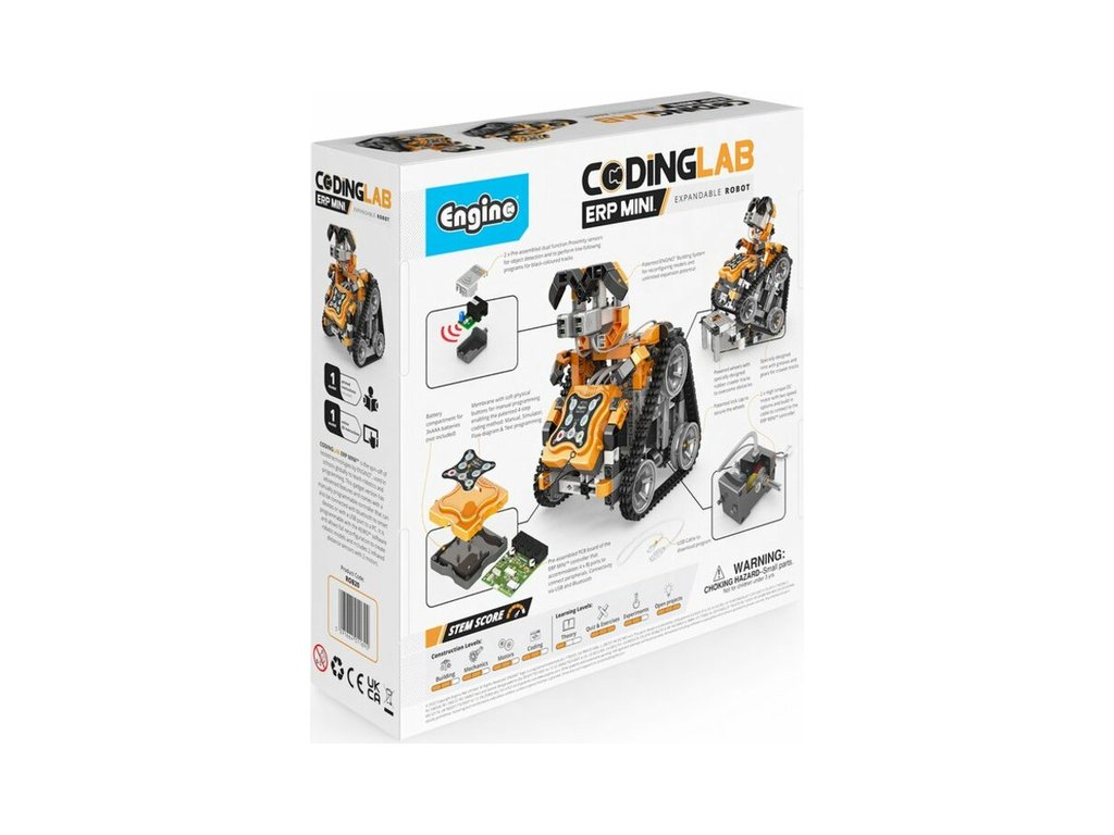 CODINGLAB ERP MINI™ je sadou testovaných technologií společnosti ENGINO®, používaných ve školách po celém světě k výuce robotiky a programování. Tato verze přístroje má pokročilé funkce a je dodávána s ručně programovatelným ovladačem, který lze také připojit pomocí Bluetooth k chytrým zařízením nebo pomocí USB portu k počítači. Je programovatelný pomocí softwaru KEIRO™ a umožňuje plnou rekonfiguraci pro vytváření robotických modelů a obsahuje 2 infračervené senzory vzdálenosti a dva motory.