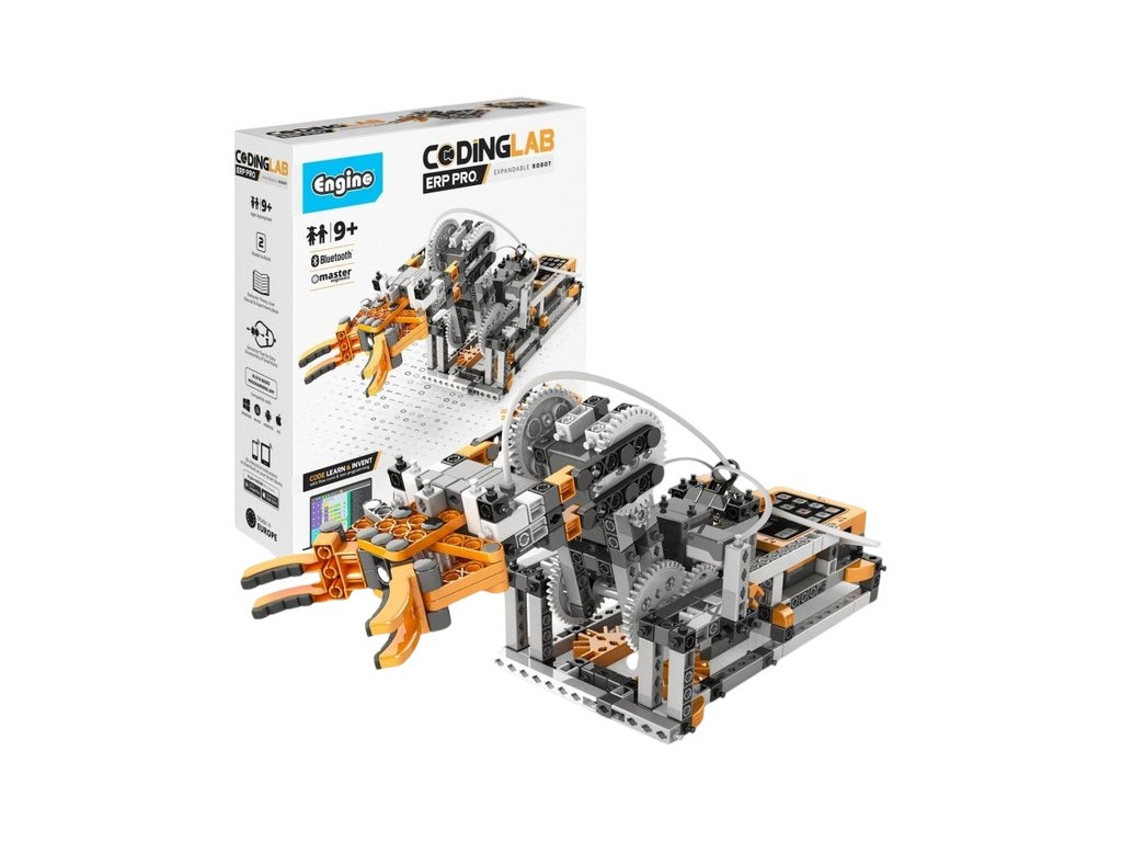 CODINGLAB ERP PRO™ je založen na první robotické platformě ENGINO®, která zavedla novou éru inovací vedoucí globální trend STEM. Sada gadgetů, kromě ultrazvukového senzoru, jednoho IR senzoru a 3 motorů, obsahuje rozsáhlou knihovnu mechanických dílů s převodovými systémy pro sestavení pokročilých modelů, včetně funkční robotické paže a uchopovacího ramena. ERP PRO™ je dodáván s ručně programovatelným ovladačem, který lze také připojit pomocí bluetooth k chytrým zařízením nebo pomocí USB portu k počítači. Je programovatelný pomocí softwaru KEIRO™ a umožňuje plnou rekonfiguraci pro vytváření robotických modelů a procvičování kódování pomocí algoritmického uvažování.