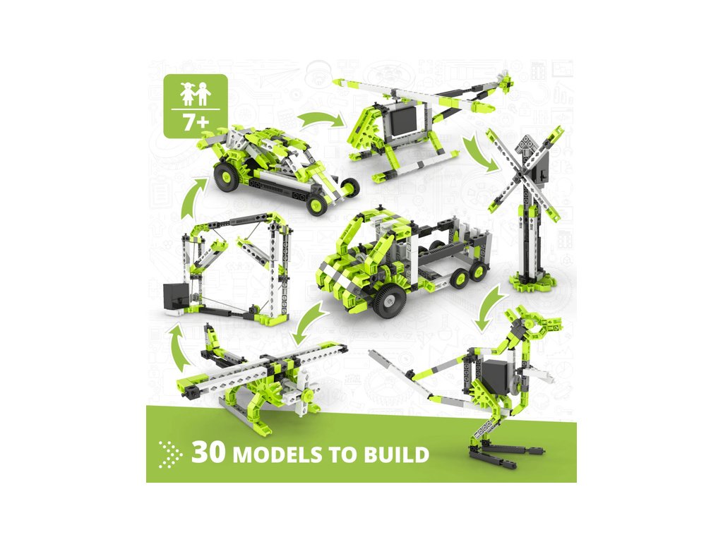 Engino Inventor 30 modelů je stavebnice s možností sestavení více modelů. Obsahuje elektromotor, který vaše modely rozpohybuje. Je možné sestavit úžasná vozidla jako Buggy pro drsné cesty, tříkolky, skútr.. Věk 6+. Set obsahuje tištěný návod na 4 modely, návody na všech 30 modelů ENGINO jsou zdarma dostupné na stránkách výrobce. Návody a 3D instrukce si můžete prohlížet v PC, tabletu nebo chytrém telefonu.