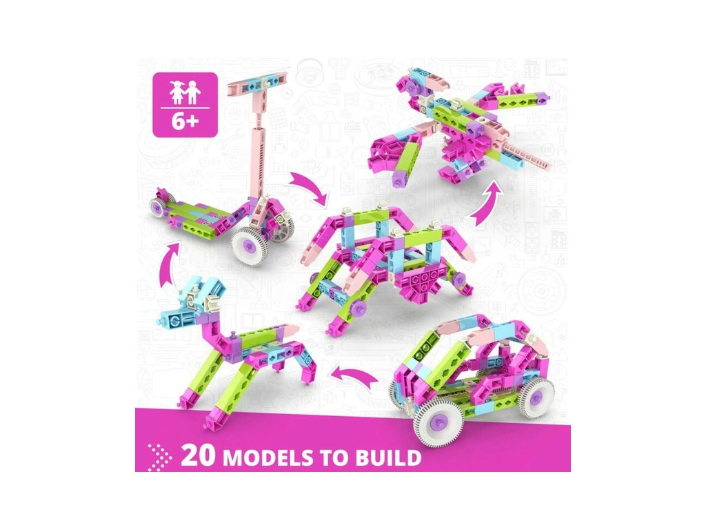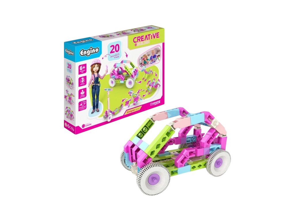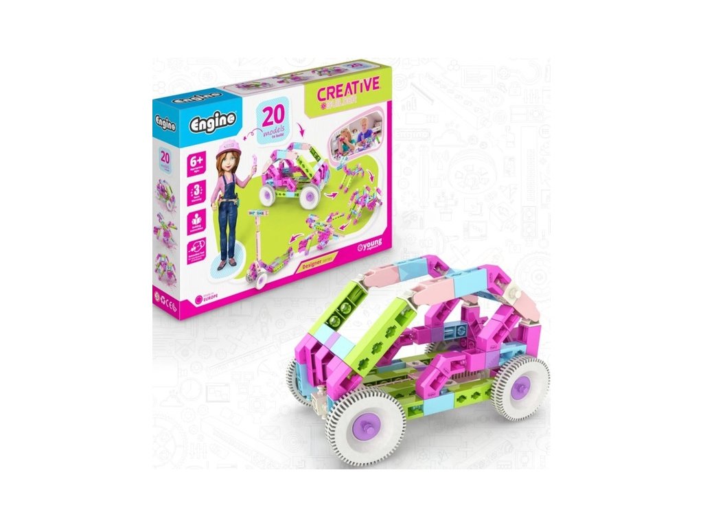 Stavebnice Engino Creative Builder Designer 20 modelů, určená pro dívky, která je inspiruje ke kreativnímu hraní a zábavnou formou budou objevovat úžasný svět vědy, techniky a inženýrství. Sestavte 20 unikátních modelů pomocí návodu, jako například koloběžku nebo ptáčka. Věk 6+.