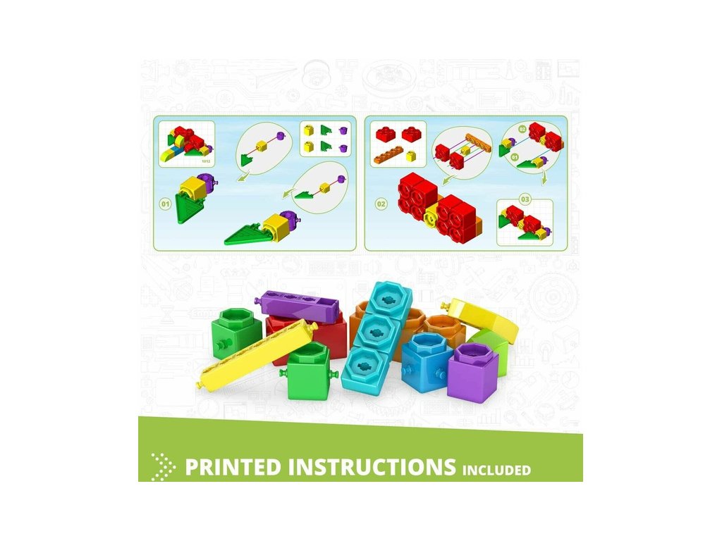 - Inovativní design: Patentovaná zaklapávací konektivita a vícesměrné otočné čepy umožňují stavět z různých úhlů až ze 6-ti stran současně.