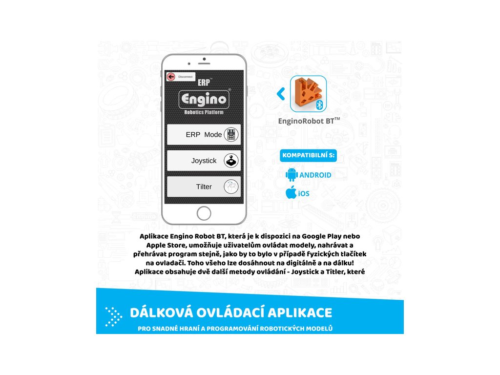 Aplikace Engino Robot BT, která je k dispozici na Google play nebo Apple Store, umožňuje uživatelům přes Bluetooth ovládat modely, nahrávat a přehrávat program stejně jako by to bylo v případě fyzických tlačítek na ovladači.