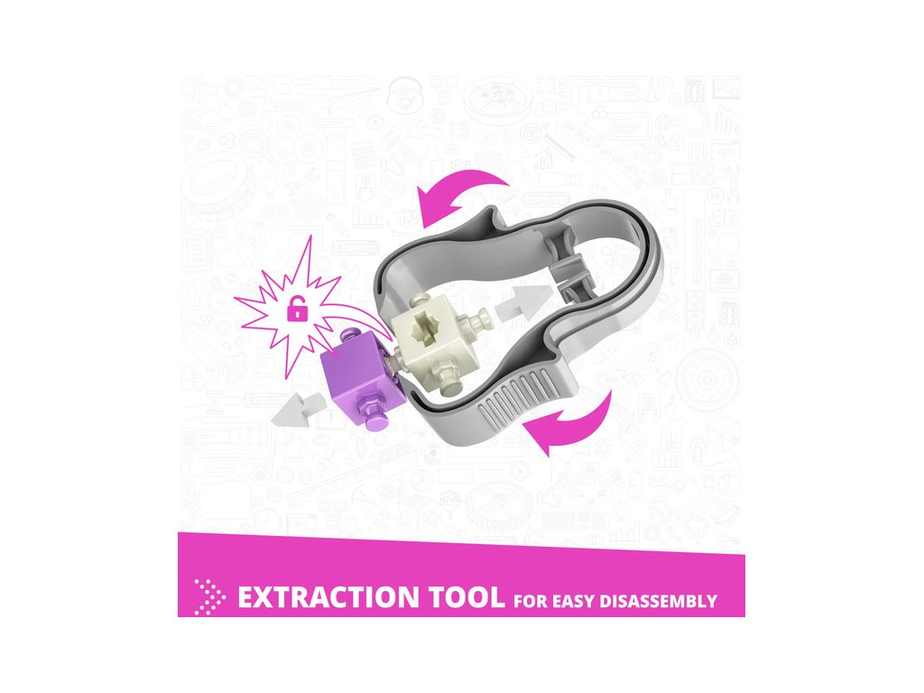 - Inovativní design: Patentovaná zaklapávací konektivita a vícesměrné otočné čepy umožňují stavět z různých úhlů až ze 6-ti stran současně.