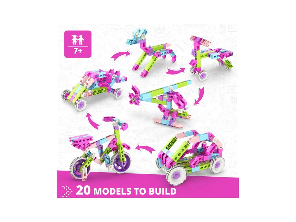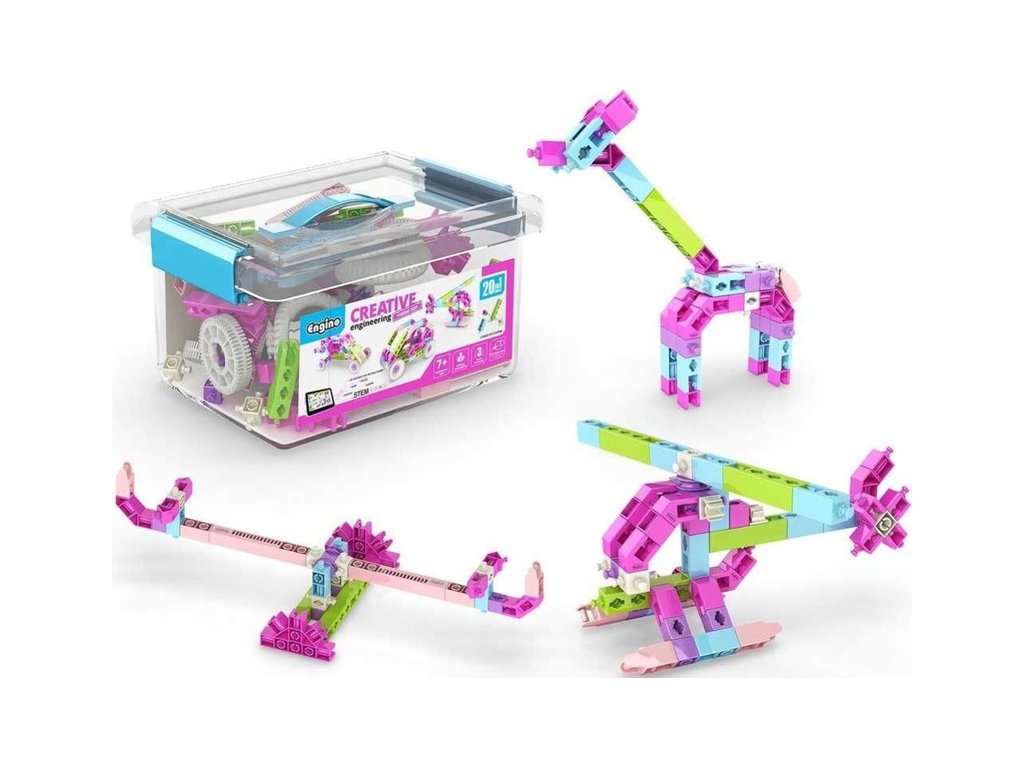 Engino Creative Engineering 20 modelů Girl je stavebnice pro děti od 7 let, pomocí které můžou postavit 20 modelů dle návodu a mnoho dalších dle své fantazie. Sada obsahuje dílky v holčicích barvách, které podnítí malé inženýrky ke stavbě a navrhování modelů. Počet dílků 111.