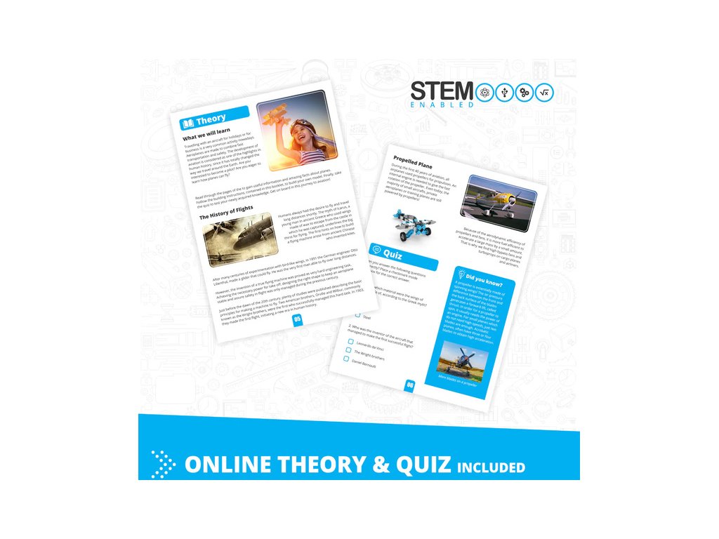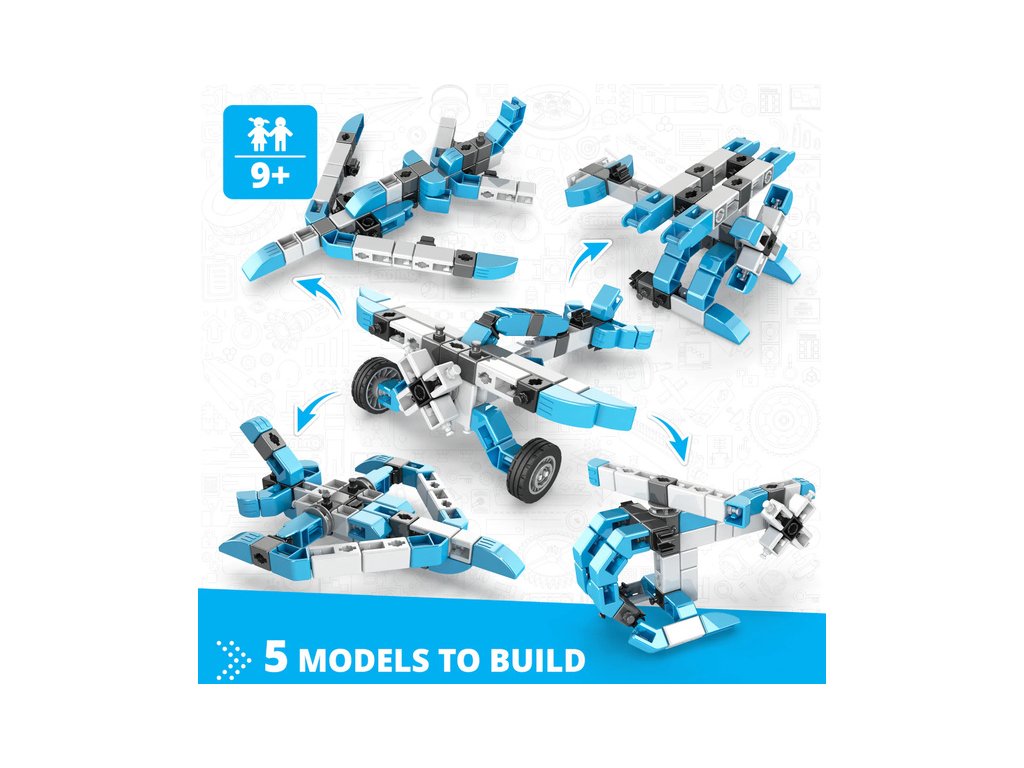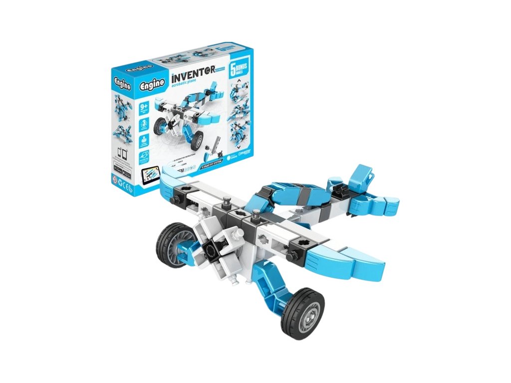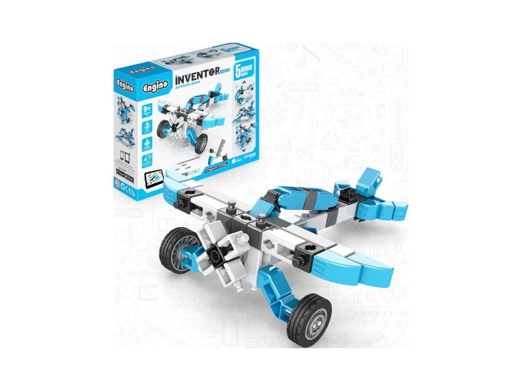 Stavebnice pro děti od 9 let, Engino Inventor Mechanics akrobatické letadlo, sestavit lze 5 různých modelů letadel a vrtulníků. Jednoduchá kreativní stavebnice pro děti, s možností využít stávající díly k dalším stavebnicím Engino. Obrázkový přehledný barevný návod.