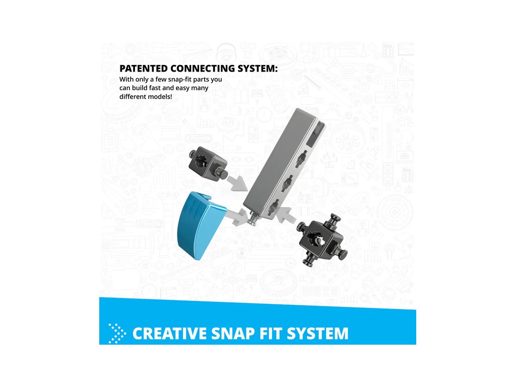 - Inovativní design: Patentovaná zaklapávací konektivita a vícesměrné otočné čepy umožňují stavět z různých úhlů až ze 6-ti stran současně.
