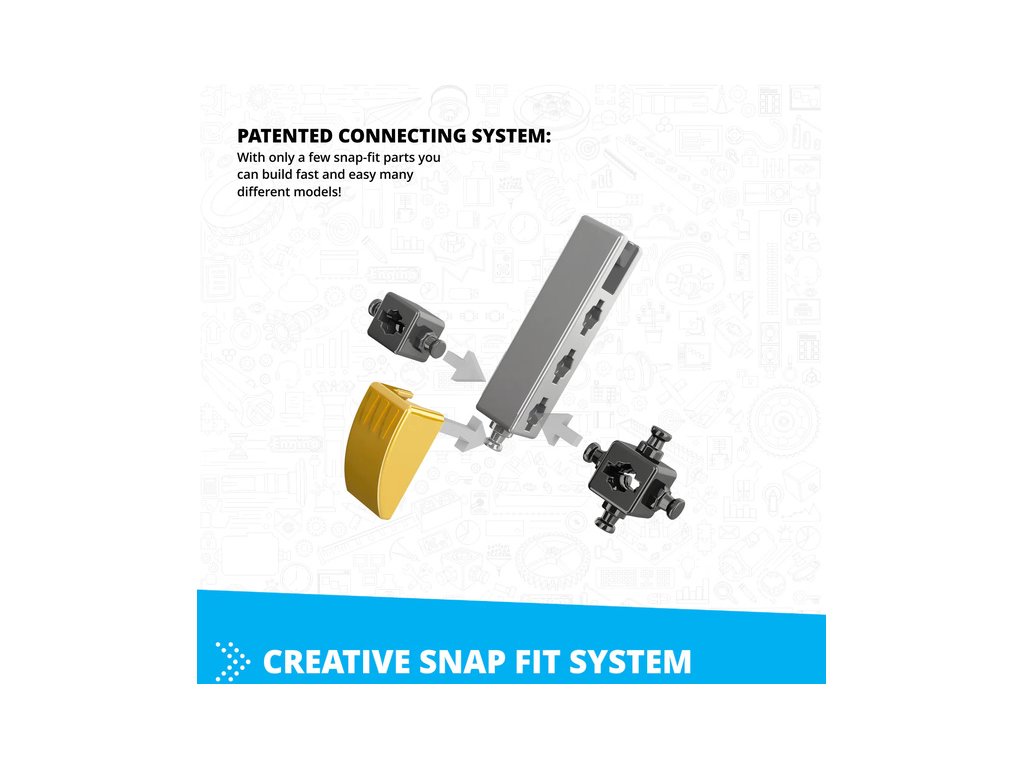 - Inovativní design: Patentovaná zaklapávací konektivita a vícesměrné otočné čepy umožňují stavět z různých úhlů až ze 6-ti stran současně.