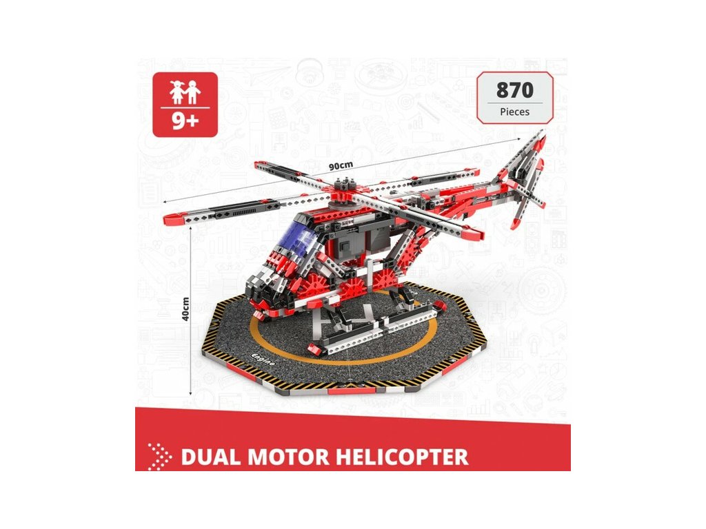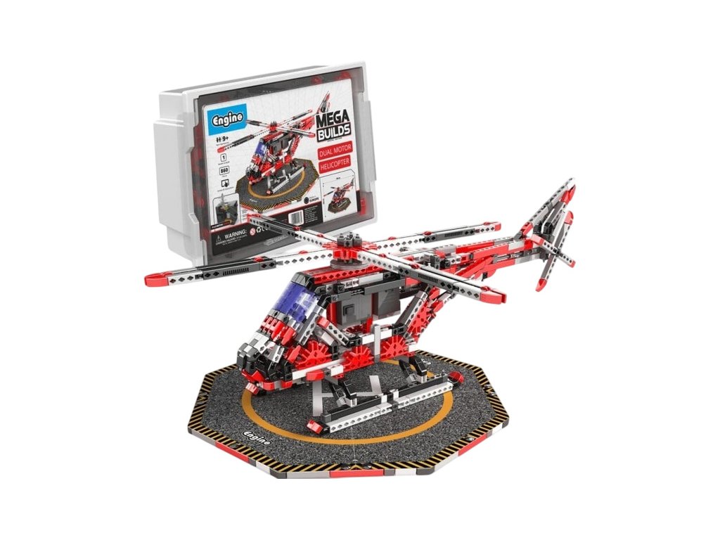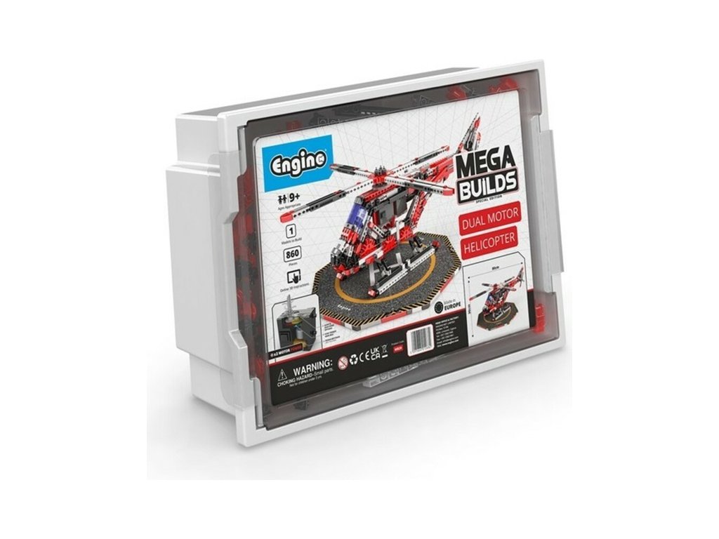 Po masivním úspěchu modelů Discovering Mega byla vyvinuta nová řada na míru pro nadšené uživatele ENGINO, kteří touží si postavit velký MEGA model a mít jej stále vystavený. Kreativní stavebnice Engino Mega Builds - vrtulník + dva motory, umožní dětem postavit si 90cm dlouhý vrtulník! Pro děti ve věku 9+, stavebnice obsahuje 870 dílů, které lze využít i do dalších staveb, Patentovaný systém spojování dílů.