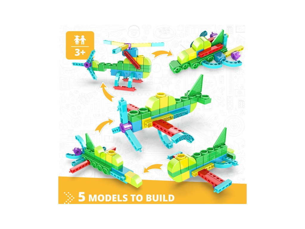 Tato kombinace hraček a knížky, která obsahuje základní koncepty STEAM, představuje dětem letadla. Prostřednictvím poutavých aktivit a podrobných instrukcí mohou děti pod vedením dohlížejícího dospělého postavit modely letadel. Každé téma poskytuje vzrušující fakta a zároveň rozvíjet dovednosti STEAM 21. století..