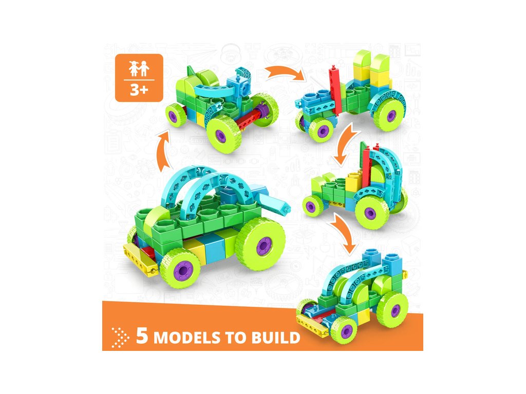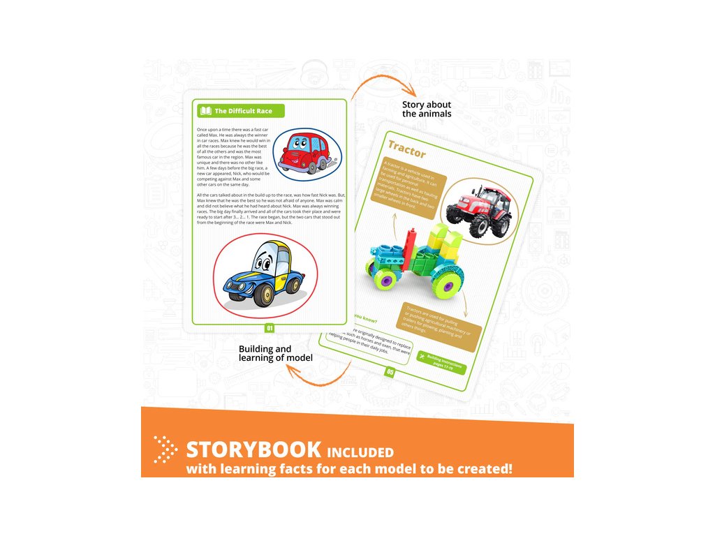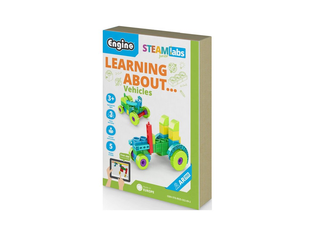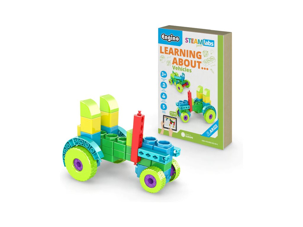 Stavebnice Engino Učíme se o vozidlech, je příběhové dobrodružství, ve kterém malí žáci objevují úžasná fakta o svých oblíbených silničních a terénních vozidlech a zároveň rozvíjejí klíčové dovednosti STEAM (věda, technika, inženýrství, umění a matematika), jako je koordinace ruka-oko, prostorové myšlení a tvořivost .