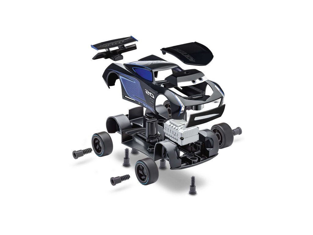 Obsahuje 19 dílků, všechny potřebné šrouby a šroubovák ergonomicky tvarovaný do dětské ruky. Každý malý fanoušek Aut od 4 let si tak může sestavit vlastní odolné vozidlo. Robustní konstrukce zaručuje zábavu při hře bez jakýchkoli obav. Bytelná konstrukce. Vhodné pro opětovné sestavování. Otevíratelná kapota. Vyměnitelné díly pro různé výrazy obličeje. Pohodlné zdobení modelu pomocí přiložených samolepek. Baterie jsou součástí balení (3x LR44). Délka: cca 20 cm.