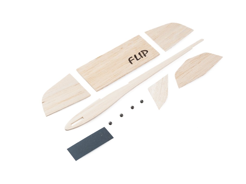 Celobalsové házedlo s velmi jednoduchou stavbou, ideální jako úplně první model, který postavíte během několika desítek minut. Díky přesným CNC vyřezávaným dílům nebudete potřebovat žádné nástroje, pouze acetonové lepidlo (Kanagom, UHU-hart apod.) a špendlíky. Vzhledem ke kapesním rozměrům si s Flipem skvěle zalétáte kdekoliv, třeba na nedělní odpolední vycházce do parku.