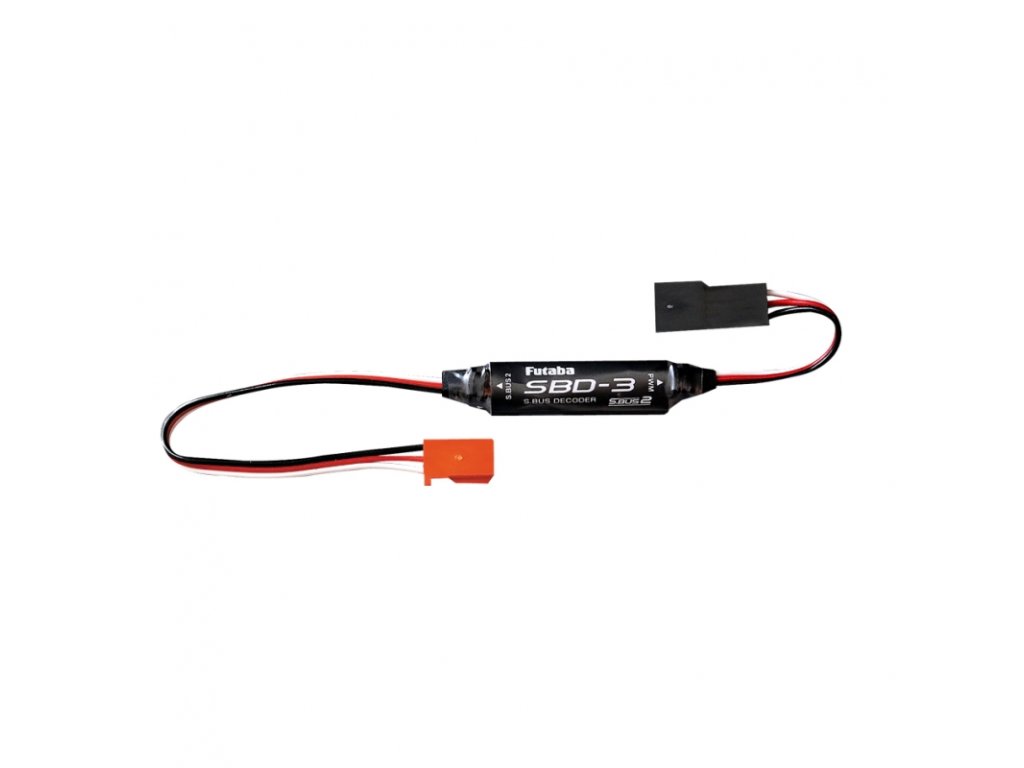 Kabelový dekodér S-BUS umožňující připojení jednoho klasického serva (analogového i digitálního) nebo elektronického regulátoru otáček k sériové sběrnici S.BUS nebo S.BUS2, vhodný pro analogová i digitální serva s napájením 3,7-7,4 V (jmenovité), provozní rozsah napětí 3,5-8,4 V.