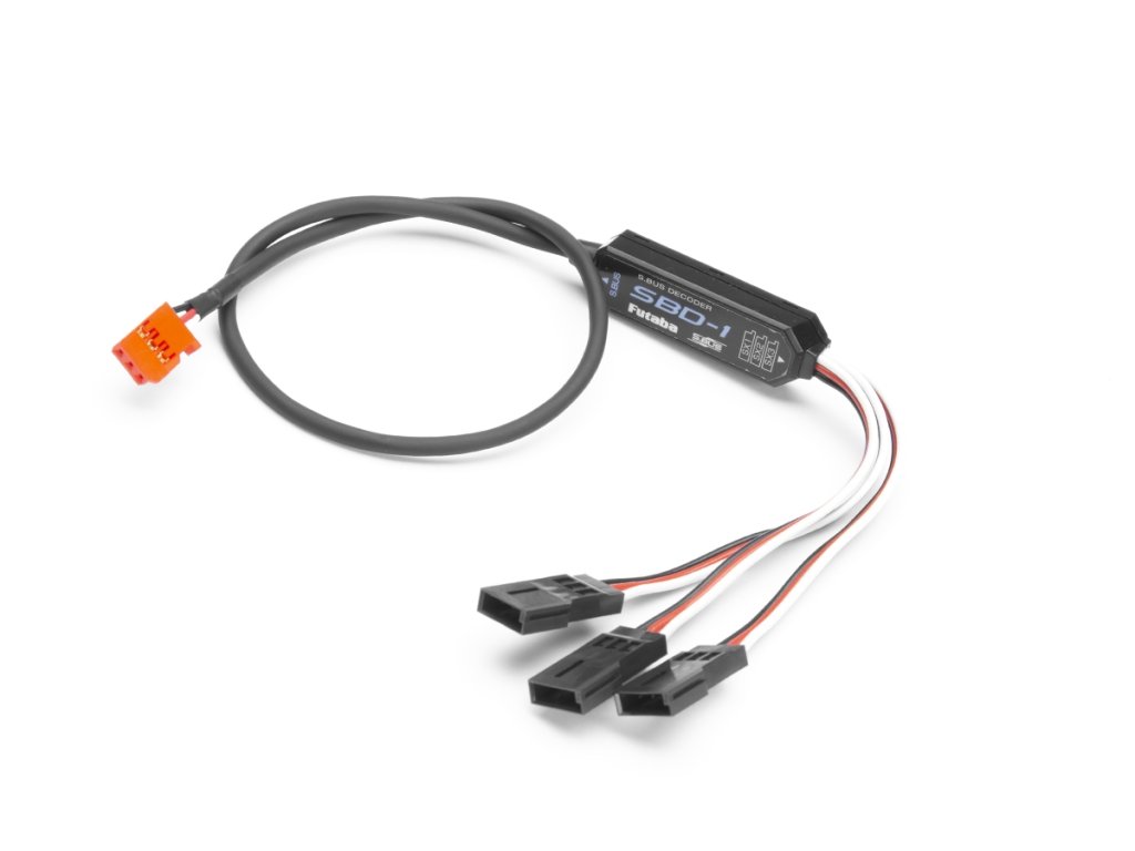 Kabelový dekodér S-BUS umožňující připojení až tří klasických serv k sériové sběrnici S-BUS, vhodný pro analogová i digitální serva se standardním napájením 4,8-6,0 V (4-5čl. NiMH). Nelze použít pro sběrnici S-BUS2.