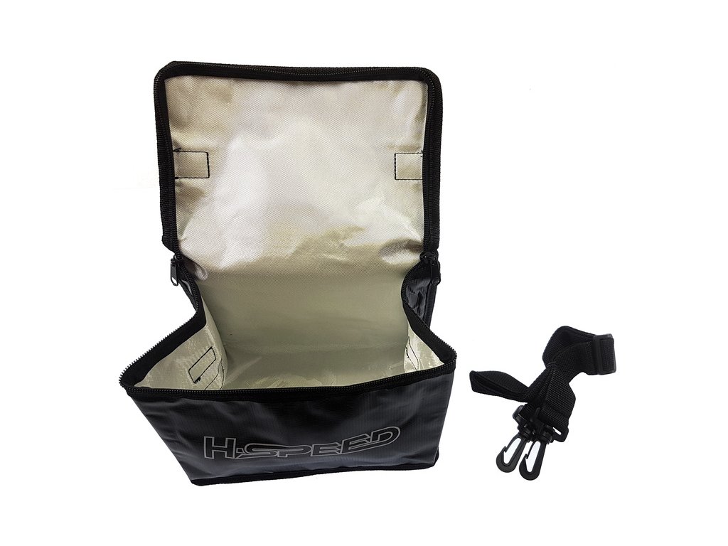 Ochranný obal H-Speed je určen k omezení rizika spojeného s přepravou a nabíjením lithiových akumulátorů. V případě vzplanutí zabrání expanzi obsahu a vyšlehnutí plamene. Zároveň omezuje přístup vzduchu a přispívá tak k jeho uhašení. Rozměry 21 x 16 x 15 cm. Dle velikosti je do obalu možno uložit 10 a více standardně používaných akumulátorů. Součástí balení je nastavitelný popruh s maximální délkou 120 cm.