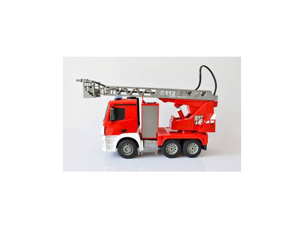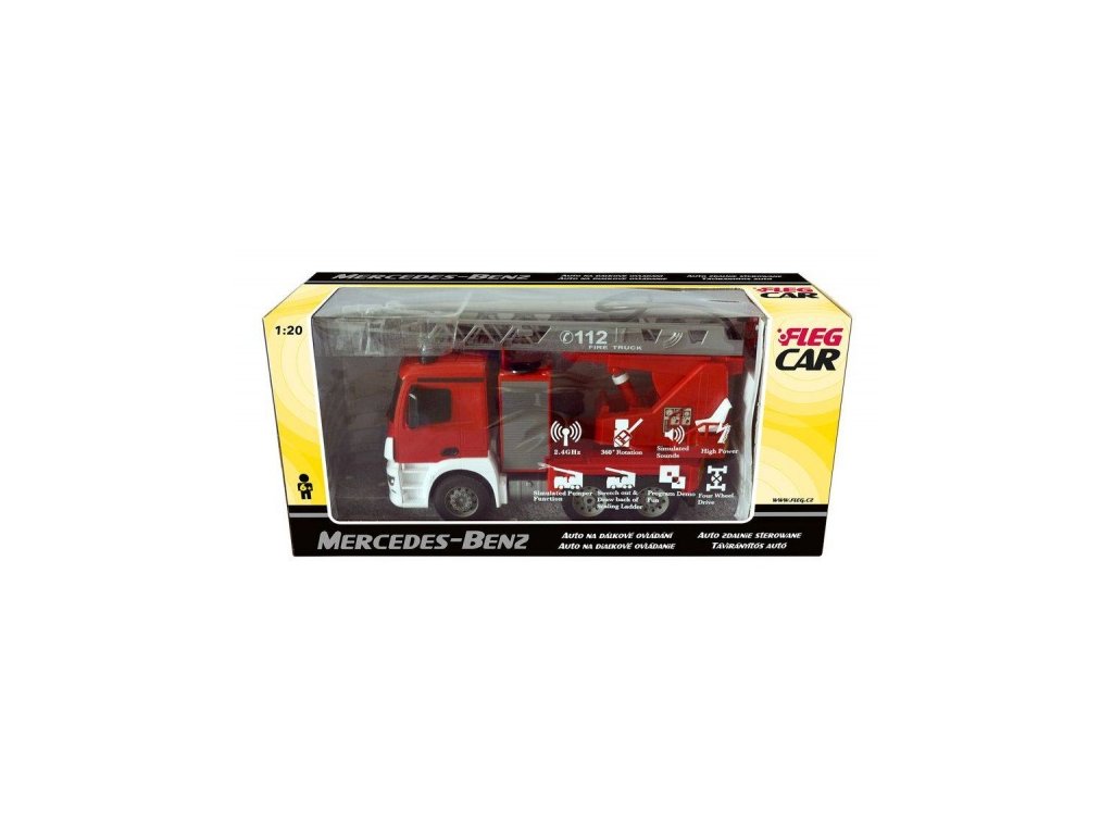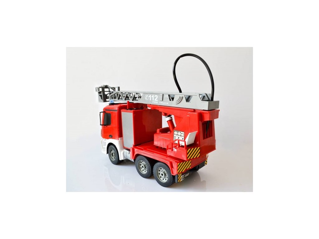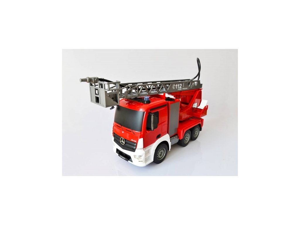 Hasičské auto na dálkové ovládání značky Mercedes-Benz. Jezdí dopředu, dozadu, vlevo, vpravo. Hasičské auto je funkční, můžete do ní lít vodu a stříkat na vzdálenost několika metrů.Součástí auta je i výsuvný žebřík, který ovládáte přes vysílačku a točí se o 360° (nahoru, dolu, doprava, doleva). Auto má zvukové (klakson a siréna) i světelné signály při nastartování, couvání i standardní jízdě. Zvuk se dá vypnout přes vysílačku.