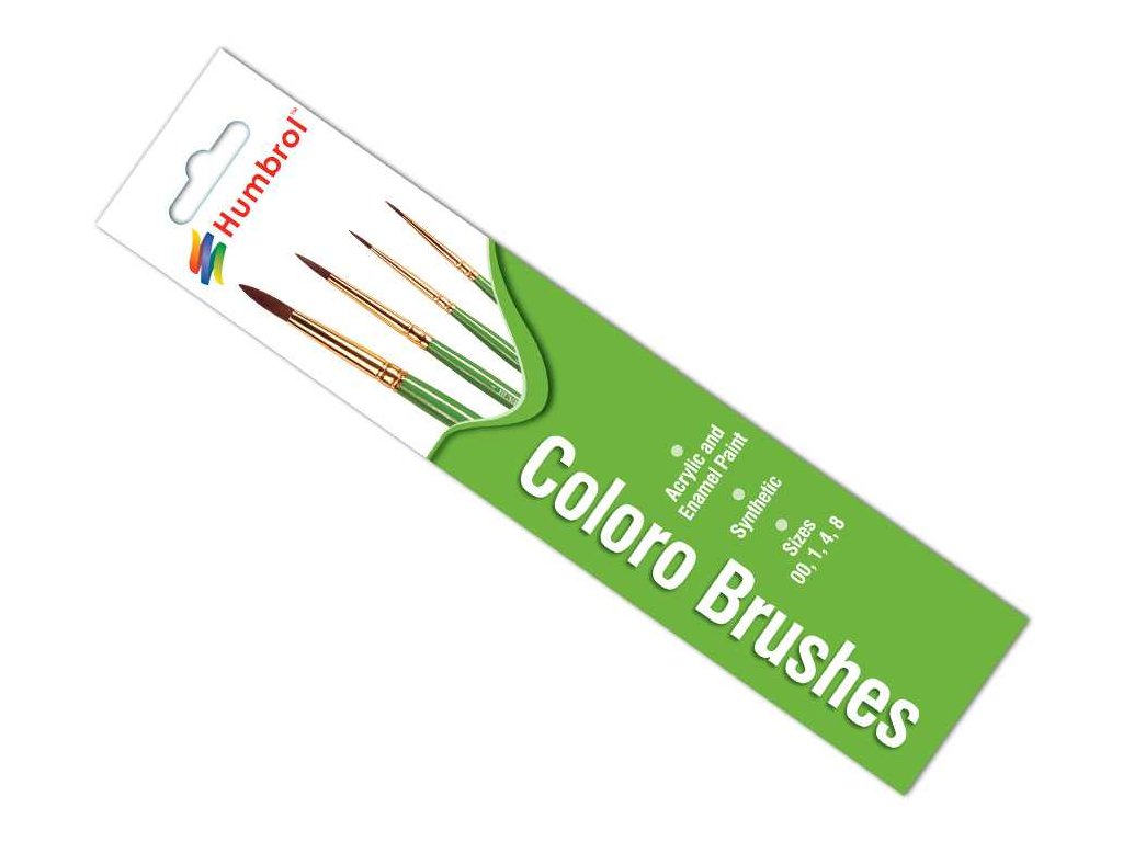 Sada kvalitních štětců z umělého vlákna, vyvinuté speciálně pro akrylové barvy Humbrol.Štětce řady Humbrol Coloro se perfektně hodí pro práci se všemi typy barev, přímo stvořené jsou však pro použití s akrylovými barvami od Humbrolu. Jsou vyrobeny ze syntetického vlákna.