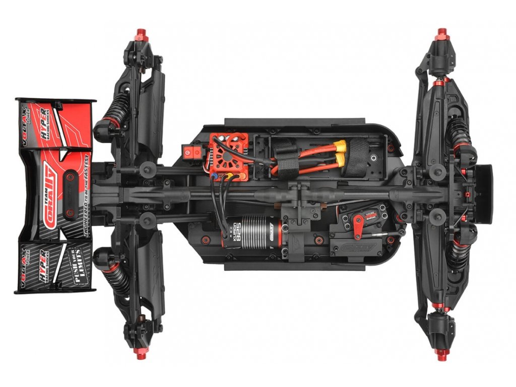 Jádrem tohoto hnacího ústrojí jsou CNC kuželové převody, zářivě červeně eloxovaná hliníková centrální skříň diferenciálu a robustní pružinové ocelové vývody - symfonie pečlivě sehraná pro neústupný výkon a dlouhou životnost. A ve světě Monster Trucků s nadměrnými pneumatikami a koly se vlastnosti tohoto robustního hnacího ústrojí ještě znásobí!
