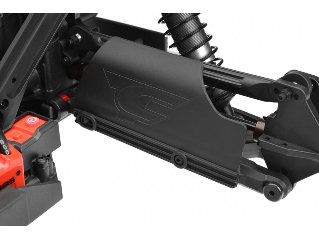 Konstrukci modelu Kagama kralují tři důležité součásti: precizně navržená ramena zavěšení, inovativní výztuhy podvozku a odolné, přesné tlumiče. Ramena zavěšení byla zcela přepracována a upřednostňují odolnost a přesnost, aniž by zvyšovala hmotnost. To je doplněno eloxovanými hliníkovými čepy závěsů a úchyty otočných koulí, které poskytují bezkonkurenční pevnost a posilují klíčové prvky zavěšení proti nárokům extrémního bourání. Kagama se odlišuje novým systémem 4x4 upevnění výztuh podvozku, který zvyšuje odolnost i výkon tím, že izoluje přepážky od nárazů a otřesů. Kromě toho je vozidlo vybaveno robustními 16mm velkorozměrovými tlumiči s hliníkovými těly se závitem a tvrdými pružinami, které zaručují spolehlivost a ovladatelnost potřebnou pro rozsáhlé bashingy. Díky použití silných 4mm laděných pístů si tyto tlumiče poradí s hustšími kapalinami potřebnými k adekvátnímu tlumení náročného terénu nebo překážek, zatímco naddimenzované spodní konce tlumičů zvyšují celkovou odolnost. Buďte svědky bezproblémové integrace těchto prvků v akci, která zajišťuje kontrolovanou přesnost i v těch nejnáročnějších podmínkách.