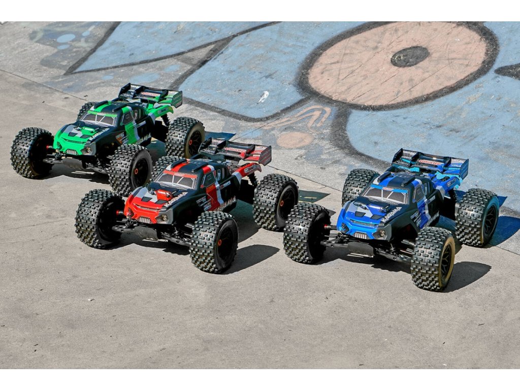 - Předpřipravený Monster Truck v měřítku 1:8 dostupný jako RTR nebo samotný podvozek