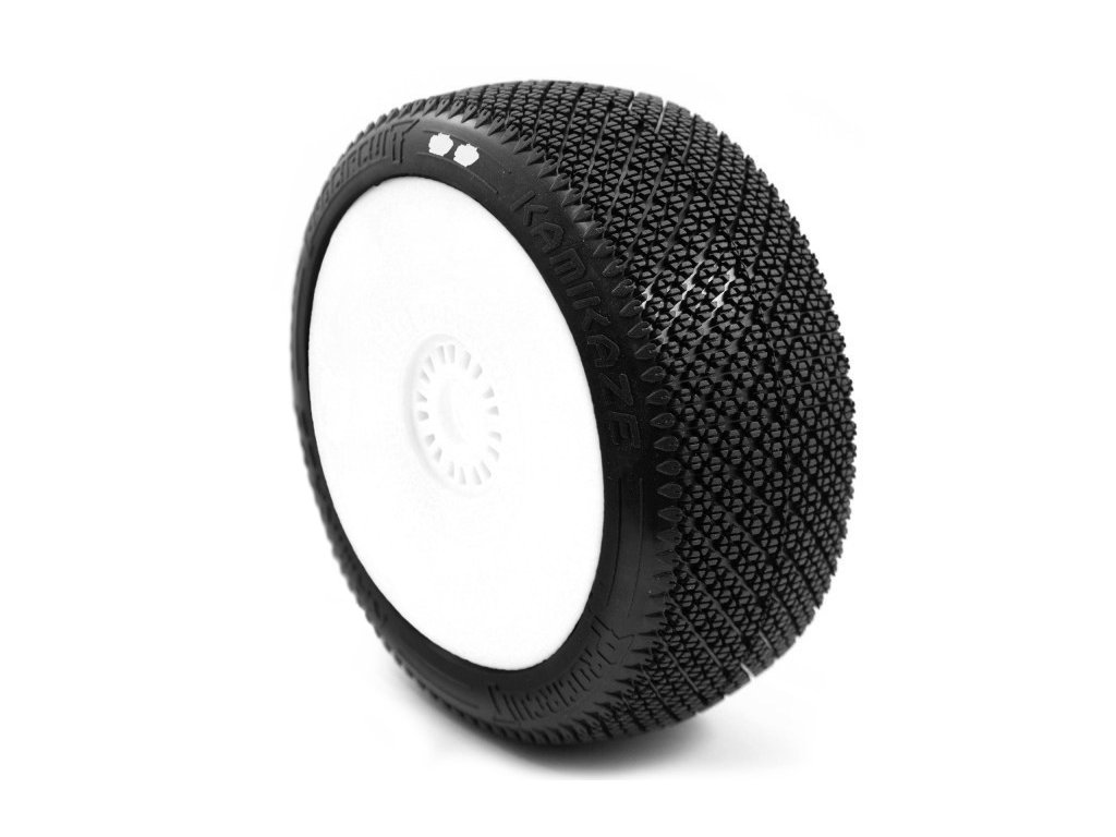 KAMIKAZE V2 BUGGY S1 (SUPER SOFT) nalepené pneumatiky, bílé disky, 2 ks.