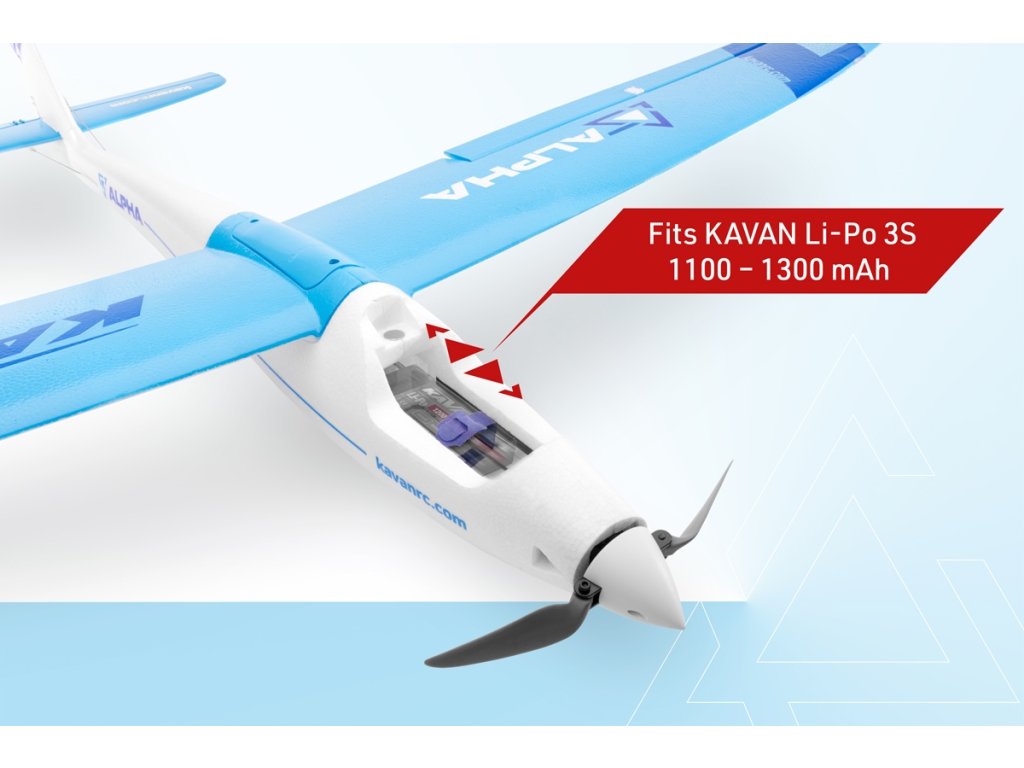 Pro napájení mnodelu ALPHA 1500 V2 budete potřebovat LiPo akumulátor 11,1 V s kapacitou 1000-1300 mAh a zatížitelností aspoň 20C.