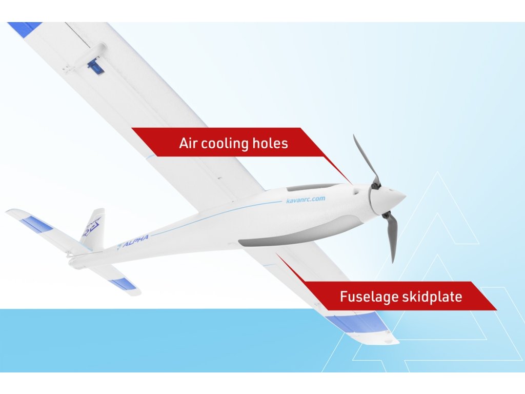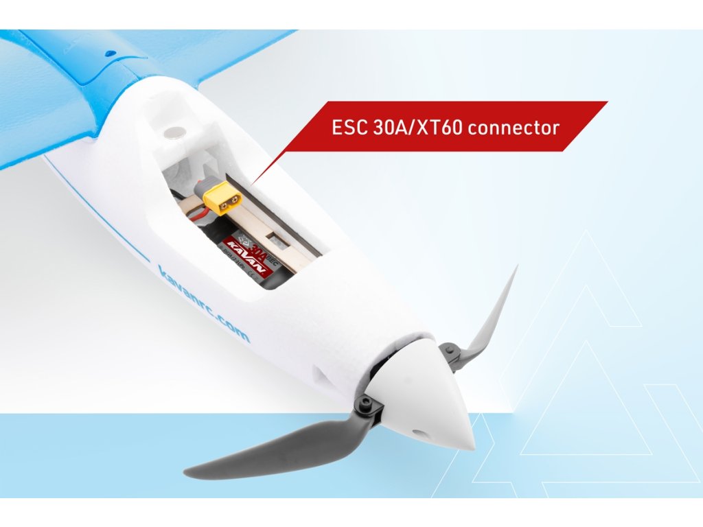 ARF set obsahuje: trup vylisovaný z EPO s namontovaným střídavým motorem, sklopnou vrtulí 8,5x5", regulátorem otáček KAVAN 30A a 2 servy KAVAN GO-09, křídlo vylisované z EPO s instalovanými 2 servy KAVAN GO-09 a LED světly, ocasní plochy z EPO, ocelovou spojku křídla a podrobný návod ke stavbě a létání.