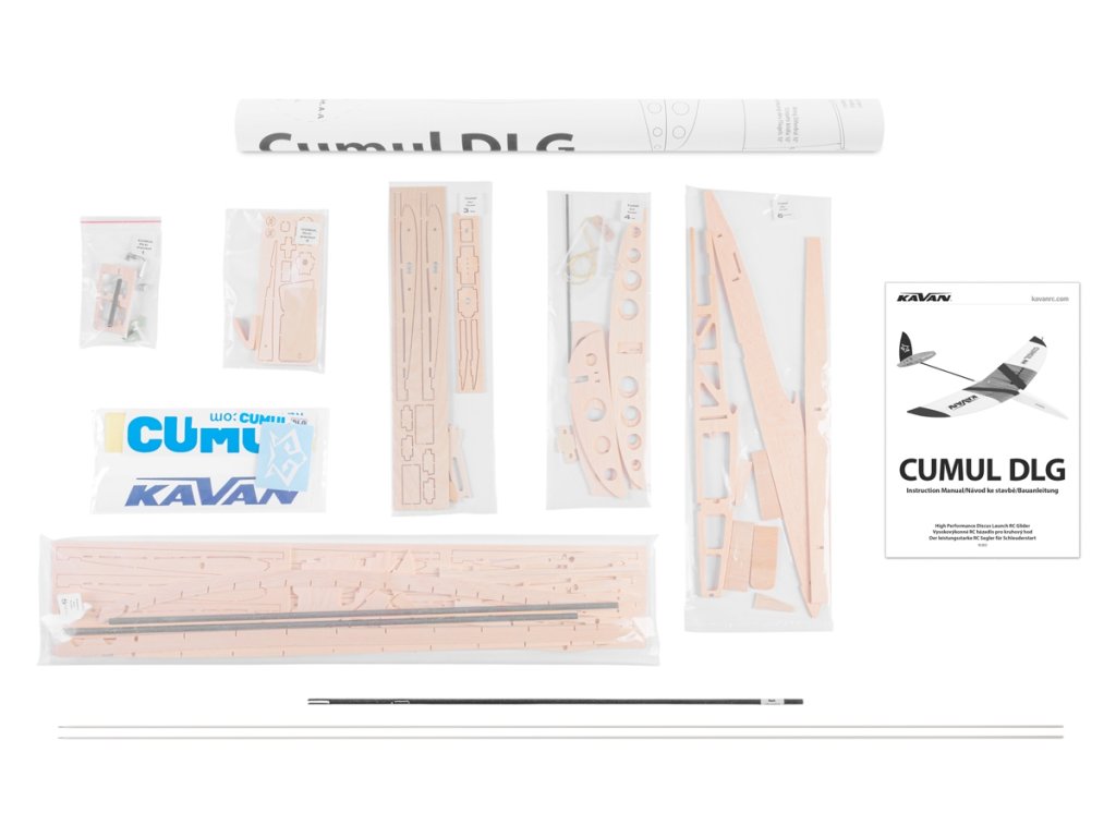 Stavebnice obsahuje: CNC vyřezávané balsové a překližkové díly, uhlíkové trubkové nosníky křídla, uhlíkový trubkový ocasní nosník, sadu příslušenství, arch samolepících obtisků, stavební plán v měřítku 1:1 a návod.