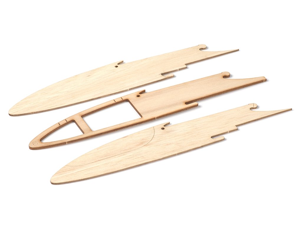 Stavebnice obsahuje: vyříznuté a předbroušené díly trupu, křídla a ocasních ploch, brusný papír, zátěž, aršík samolepek, stavební plánek a návod ke stavbě.