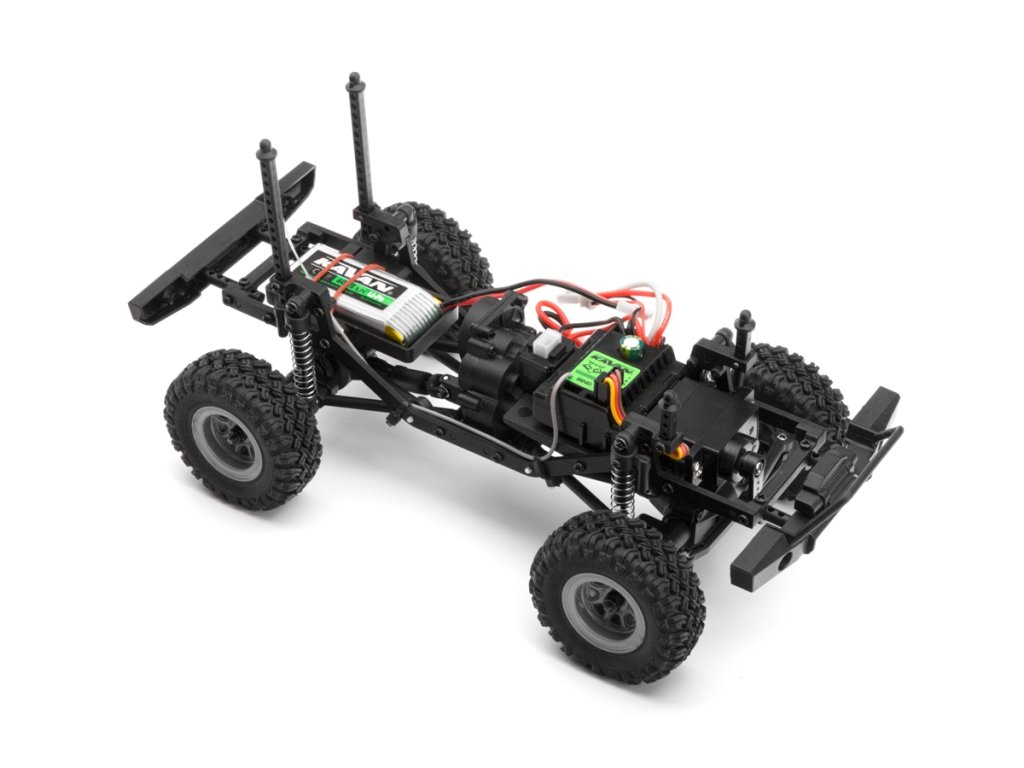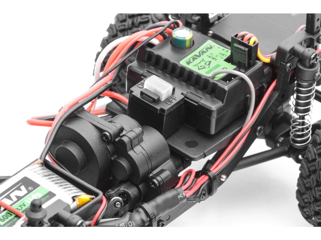 Silný motor pomůže bez problémů zkrotit redukční převodovka. Digitální servo a kvalitní systém dálkového ovládání pak dodá jistotu a přesnost. Vysílač obsahuje potřebná nastavení pro vystředění, reverz i koncové body a díky snadnému rozložení nezabere žádné místo navíc.