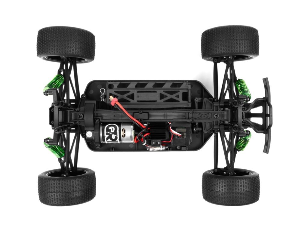 Tato truggy je vybavena spolehlivým pohonem 4WD, který zajišťuje stabilitu a trakci v nejrůznějších podmínkách. Její kartáčový elektromotor s vysokým točivým momentem o velikosti 550 jí propůjčuje rychlost až 35 km/h.