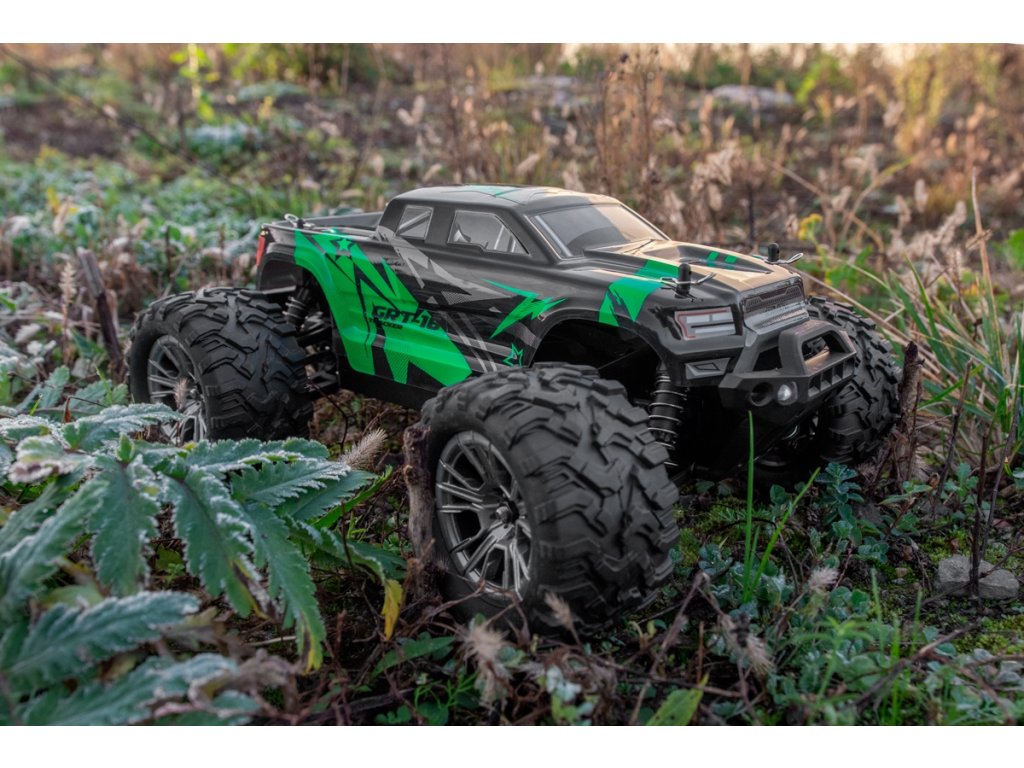 Tento malý monster truck se chlubí výrazně lakovanou karoserií s unikátním designem, který vás odliší od ostatních. Ale není to jen o vzhledu. Jednoduchá a pevná konstrukce podvozku nabízí odolnost, díky které odolá nárazům při pilování řidičské techniky.