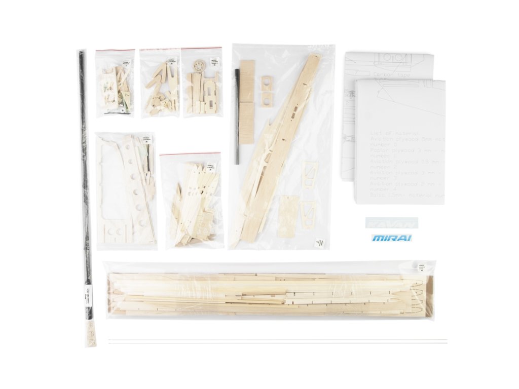 Stavebnice vysokovýkonného termického větroně klasické velmi lehké celobalsové konstrukce v rozsypu, který můžete také snadno upravit pro pohon 150–200W střídavým elektromotorem. MIRAI je ideálním projektem pro modeláře, který si chce postavit opravdu výkonný model pro soutěžní nebo rekreační létání. Díky promyšlené konstrukci s CNC vyřezávanými díly opatřenými výstupky a zářezy, které do sebe zapadají jako díly puzzle skládačky, jde stavba velmi rychle a snadno. MIRAI je „soutěžní plnokrevník“, s nímž můžete úspěšně bojovat o místa „na bedně“ v kategorii F3-RES nebo F5-RES. Stavebnice obsahuje díly trupu pro čistý větroň i elektrolet.