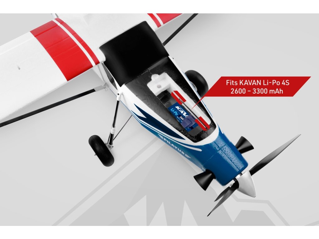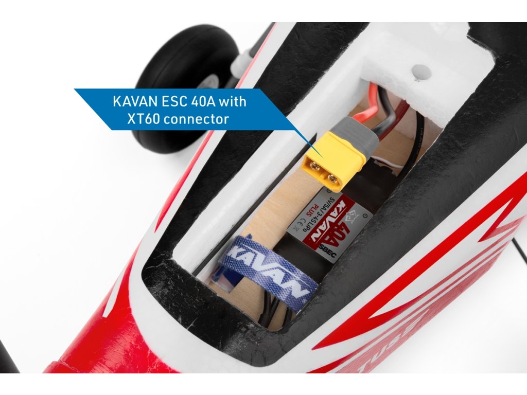 Motor *C3548-750 Regulátor *KAVAN R-40SB Vrtule *10x6“ třílistá Akumulátor KAVAN 14,8V 2600 mAh 40/80C nebo KAVAN 14,8V 3300 mAh 40/80C Serva *6x mikro RC souprava min. 7 kanálů počítačová *) Součást ARF setu