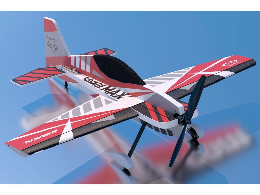 SAVAGE MAX je vysokovýkonný 3D akrobatický speciál kategorie park-fly z pěnového EPP určený pro pohon střídavými elektromotory o výkonu 350-500 W. Pár hodin s vteřinovým lepidlem v ruce stačí pro dokončení tohoto modelu schopného létat obraty klasické F3A sestavy, stejně jako viset na vrtuli a provádět všechny ostatní 3D kousky! Je určen i pro méně zkušené piloty; s menšími výchylkami s ním může létat každý, kdo má již aspoň nějakou praxi s akrobacií a je schopen spolehlivě létat s předcházejícím modelem přemet, souvrat a výkrut. Díky nízké hmotnosti modelu případné havárie v důsledku „zapletení rukou“ příliš nebolí – a EPP díly se tak snadno opravují!