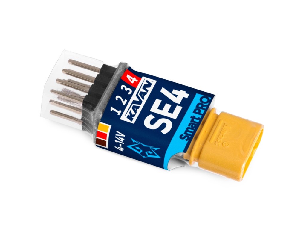 KAVAN Smart PRO SE4 je dekodér/expandér, který převádí vstupní signál sériové sběrnice na standardní servo výstupy (PWM). Nabízí až čtyři konfigurovatelné výstupy pro serva s volitelnou periodou a nastavením fail-safe. SE4 je perfektní volbou pro modely se složitou mechanikou křídel nebo ocasních ploch, kde je možné k primárnímu přijímači připojit více serv pomocí jediného kabelu. Pokud vám docházejí kanály na přijímači, jednoduše připojte SE4 k sériové lince z přijímače a libovolně přiřaďte své vlastní výstupní kanály.