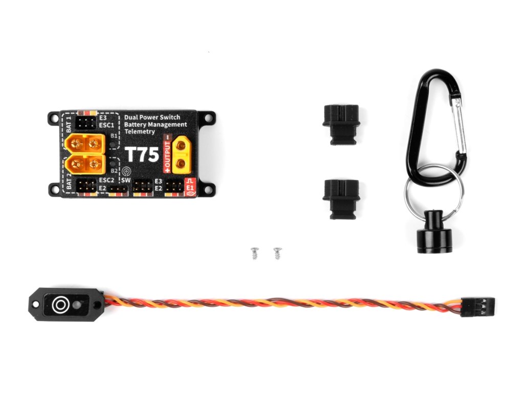 T75 je určen k zapínání/vypínání elektroniky ve vašem modelu, přičemž jím můžete kompletně nahradit mechanický vypínač. Zařízení si pamatuje svůj poslední provozní stav, a jestliže dojde k náhodnému odpojení baterie, T75 se po opětovném zapojení baterie automaticky znovu spustí a sepne.