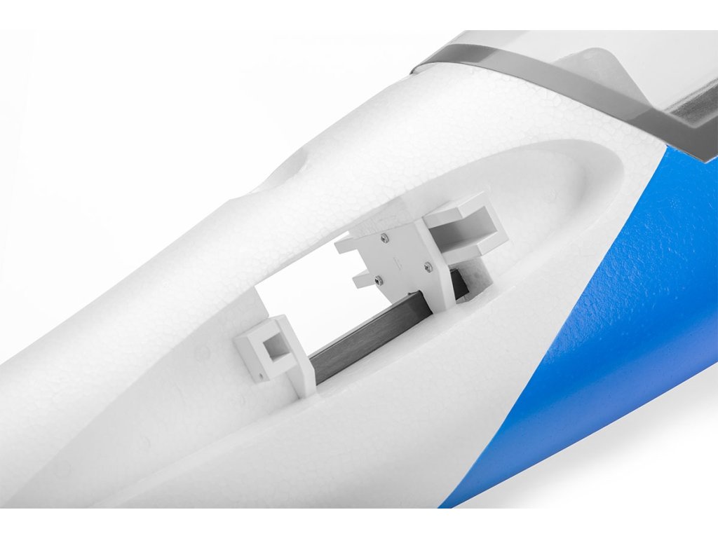 Trup modelu je zhotoven z vysoce odolného pěnového EPO (extrudovaného polyolefinu) s důkladnými vnitřními uhlíkovými výztuhami. V přídi je nainstalován střídavý elektromotor C3548-750 se sklopnou vrtulí 11x8“ a regulátorem KAVAN R-50SB s výkonným BEC stabilizátorem napájení potřebným pro napájení 4 silných mikroserv na palubě. Kryt kabiny je odnímatelný, upevňuje se pomocí čepu vpředu a magnetu vzadu. V přídi najdete dostatek prostoru pro pohonný akumulátor a přijímač. Serva směrovky a výškovky jsou uložena v kýlovce, kormidla ovládají krátkými přímými drátovými táhly.