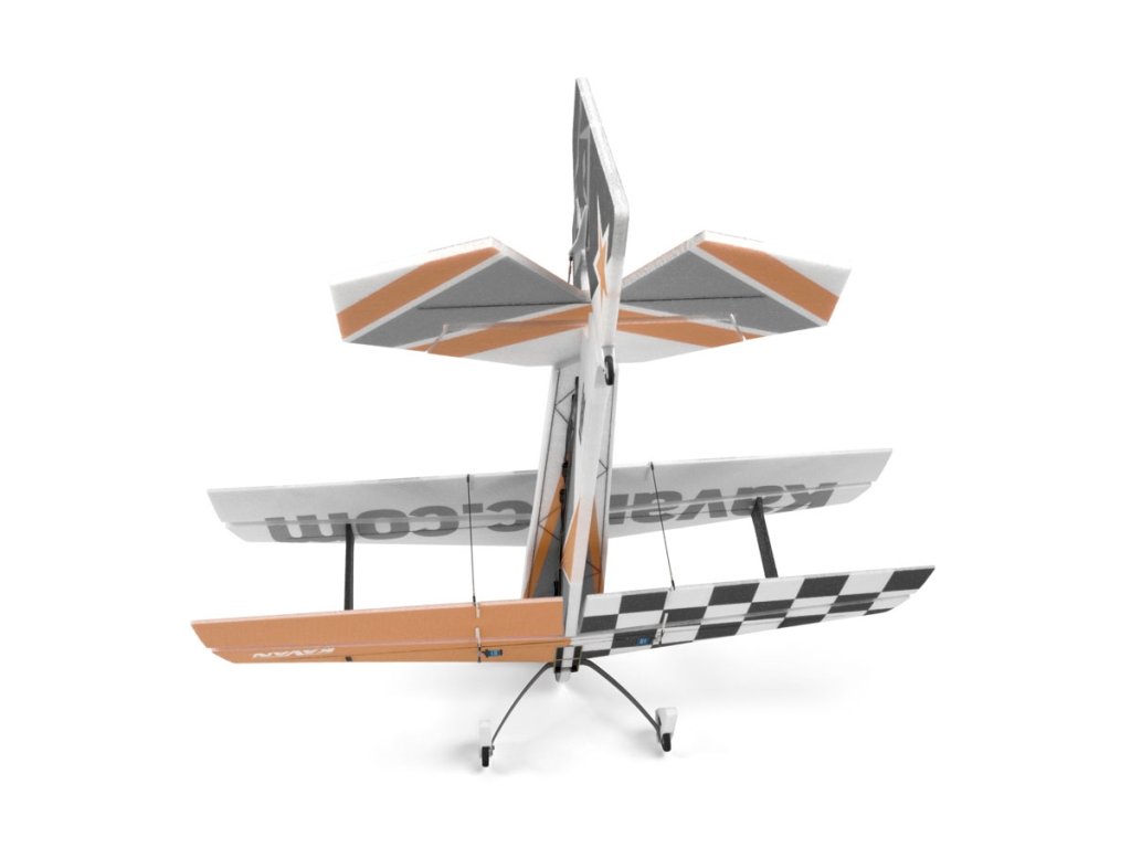 Jednodílná křídla s rozměrnými křidélky mají souměrný profil, pevnost jim dodávají uhlíkové nosníky a ve spodním křídle samozřejmě nechybějí připravené šachty pro serva. Vzpěra baldachýnu horního křídla vyztužená překližkovými díly je součástí trupu, mezikřídelní vzpěry jsou z EPP vyztuženého uhlíkem. Trup je profilový s vodorovnou částí důkladně vyztuženou uhlíkovými pásnicemi a svislou částí s velkou boční plochou pro dokonalé chování v nožovém letu. Promyšlená konstrukce zahrnuje překližkové motorové lože ukotvené do trupu pomocí uhlíkových pásnic. V trupu jsou připravené šachty serva výškovky a směrovky. Ocasní plochy jsou rovněž z uhlíkem vyztuženého EPP. Krátkými přímými uhlíkovými nebo ocelovými táhly jsou ovládána křidélka, směrovka i výškovka. Hlavní podvozek je uhlíkový se dvěma lehkými koly a EPP kryty; k opěrné laminátové desce ukotvené do trupu laminátovými držáky se upevňuje 2 šrouby. Ostruha s 3D tištěnou konzolí a lehkým pěnovým kolem je spřažena se směrovkou.