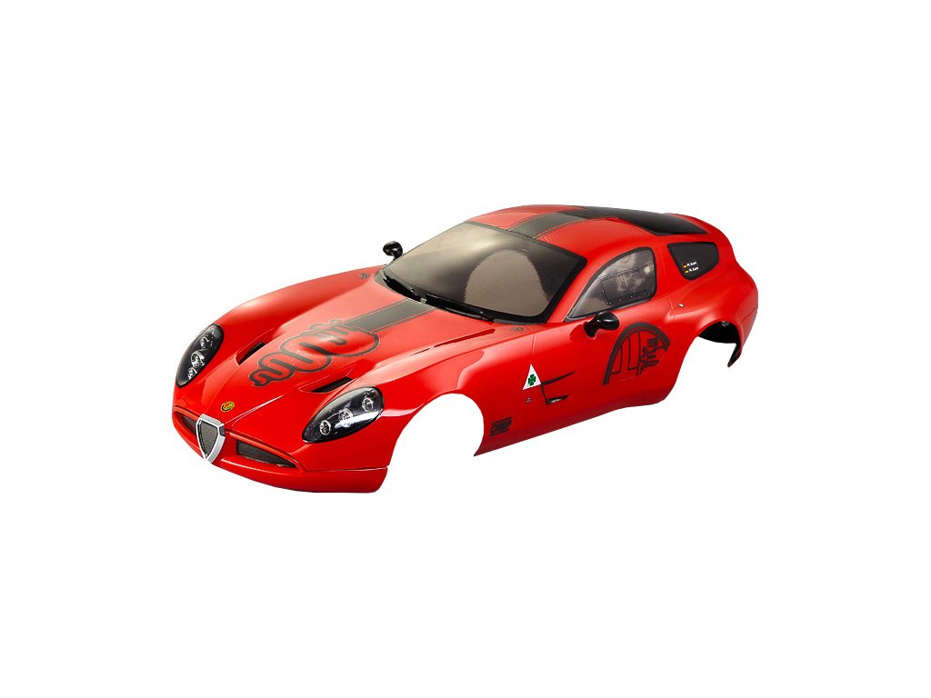 Karosérie Alfa Romeo TZ3 Corsa v červené barvě má agresivní vzhled, a je již sestavena. Jen otvory pro připevnění karosérie je nutno dodělat dle potřeby. Aerodynamické zpracování karosérie vás určitě nezklame.