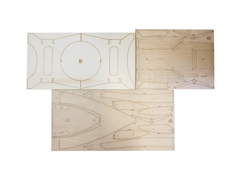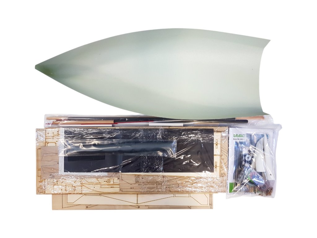 Balení obsahuje hotový trup, laserem vyřezané překližkové díly, karbonový stěžeň, předřezané plachty, ráhna, díly kování, různobarevná lana, samolepicí dekoraci s motivem draka a podrobný stavební návod.