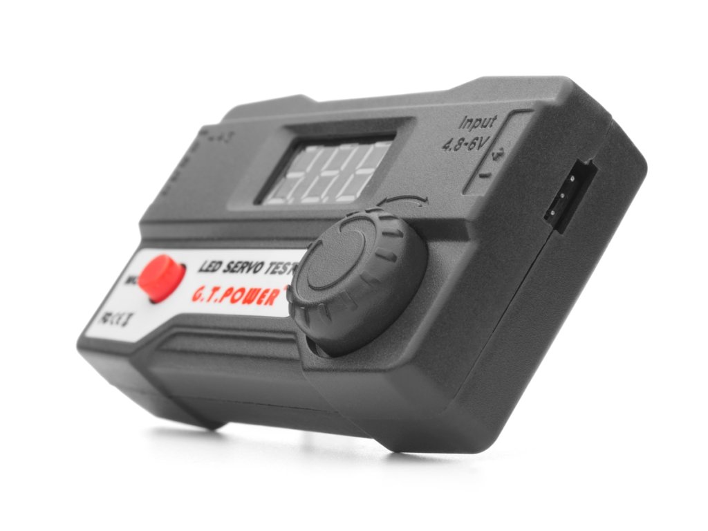Miniaturní servotester pro nastavení neutrálu až 4 serv současně a testování chodu serv nebo funkce elektronických regulátorů otáček ručně nebo automaticky se zobrazením šířky řídících impulsů na třímístném LED displeji. LED servotester generuje řídící signál s impulsy s opakovací frekvencí 50 Hz (střída 20 ms) s úrovní logické "1" 3,3 V a má tři základní provozní režimy přepínané tlačítkem: