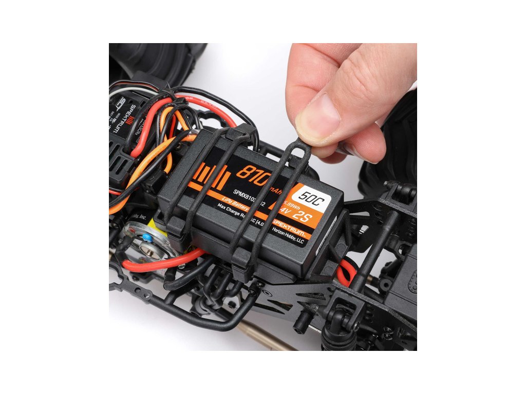 Elastické pásky dokonale obepnou a udrží akumulátor na místě i v případě, že se model ocitne v kotrmelcích. Výměna akumulátoru je snadná a nevyžaduje žádné nářadí.