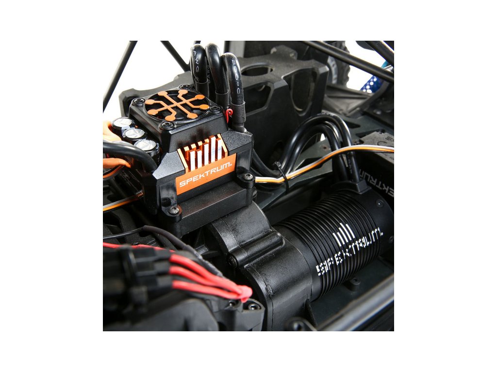 Tento model na dálkové ovládání je vybaven masivním pohonem, se kterým dosáhnete rychlosti přes 80 km/h! Bleskovou akceleraci zajistí střídavý motor Spektrum Firma 750kv, který je řízen špičkovým regulátorem Spektrum Firma Smart 160A 8S LiPo. Regulátor, přijímač Spektrum 6100AT AVC® a vysílač DX3, zajistí nejen přesné a spolehlivé ovládání, ale díky technologii Smart, je provoz modelu jednoduchý, bezpečný a k dispozici máte nejmodernější funkce včetně elektronické stabilizace AVC a telemetrie.